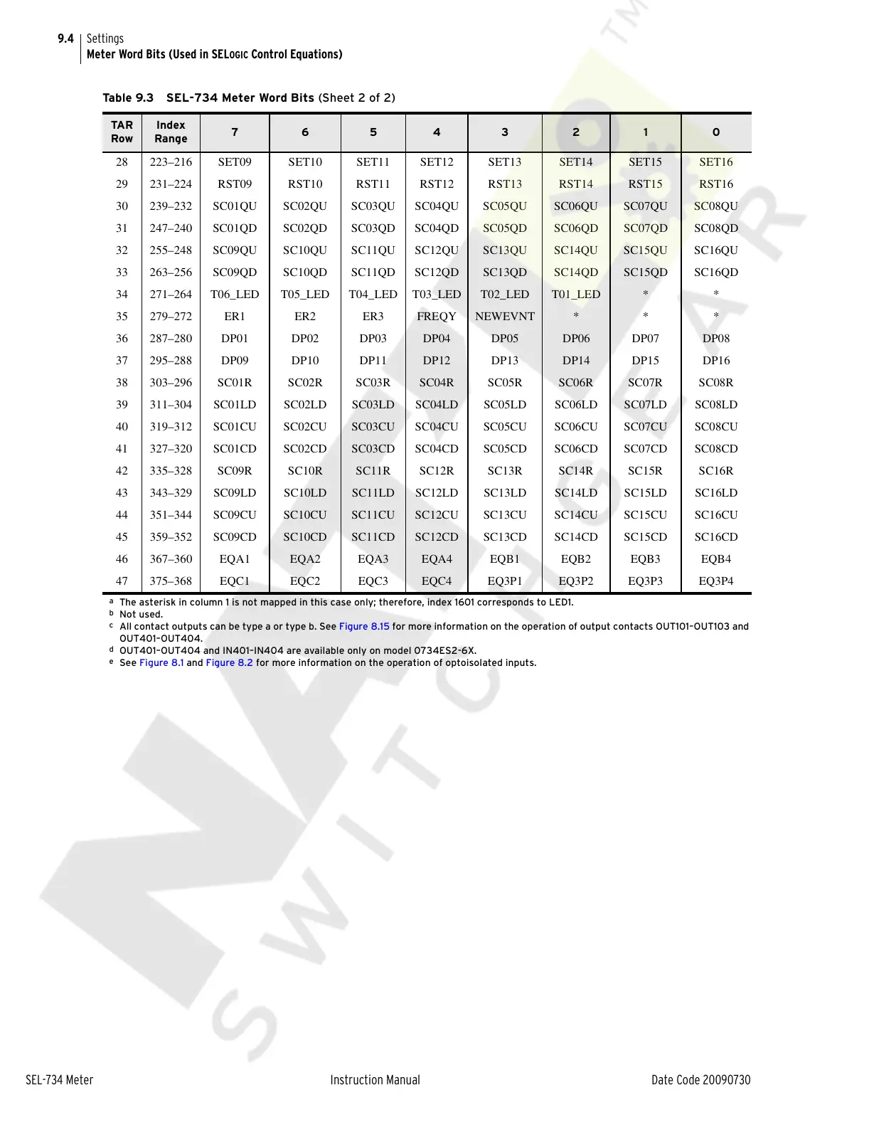 Ta b l e 9. 3 S E L - 7 3 4 M e t e r Wo rd B i t s (Sheet 2 of 2)