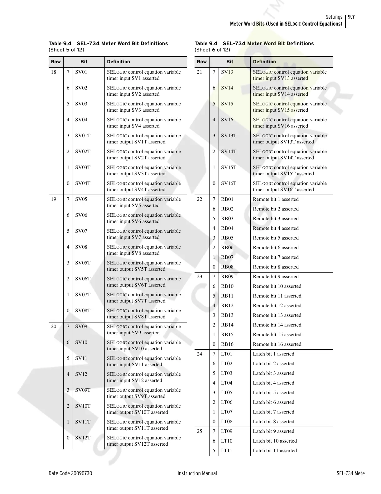 Table 9.4 SEL-734 Meter Word Bit Definitions