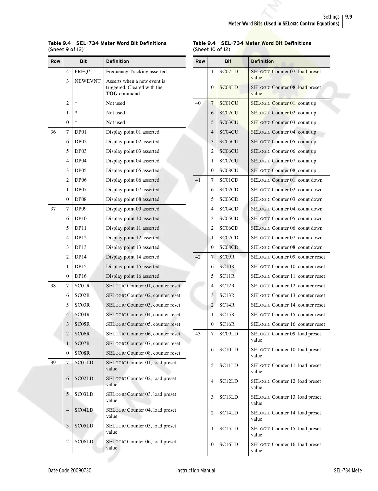 Table 9.4 SEL-734 Meter Word Bit Definitions