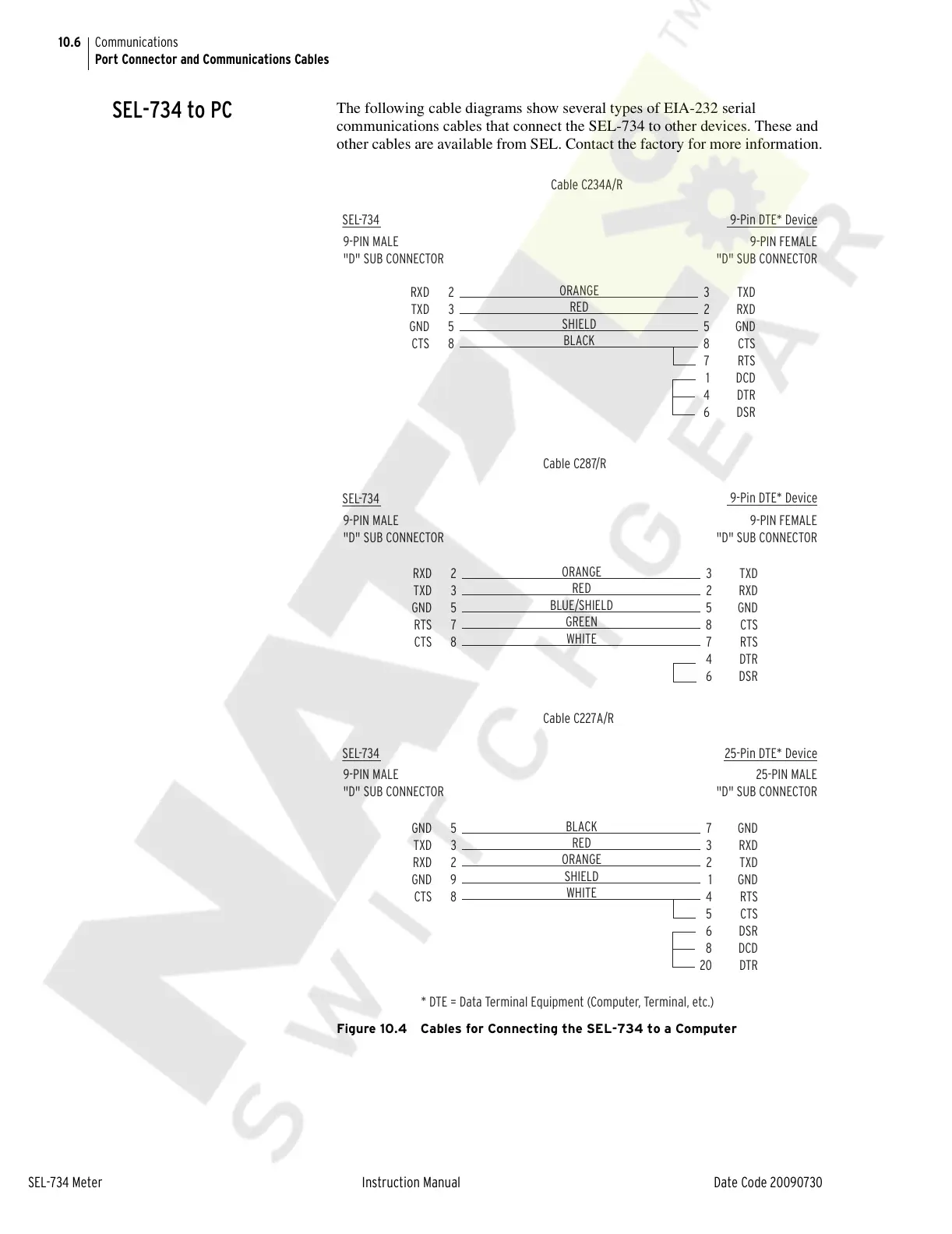 SEL-734 9-Pin DTE* Device