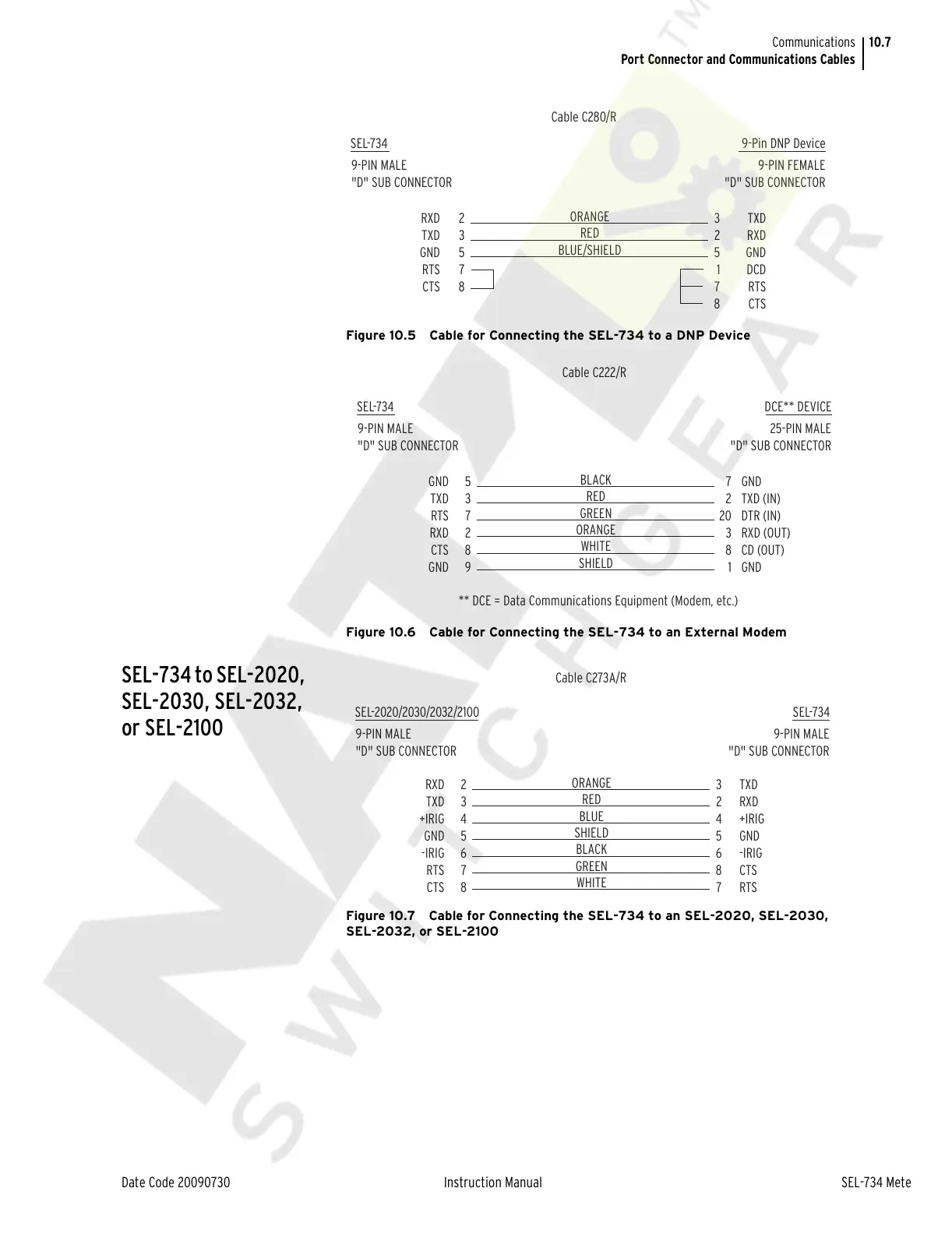 Figure 10.7 Cable for Connecting the SEL-734 to an SEL-2020, SEL-2030,