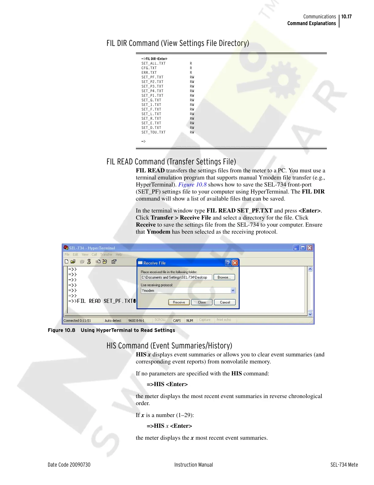 HyperTerminal). Figure 10.8 shows how to save the SEL-734 front-port