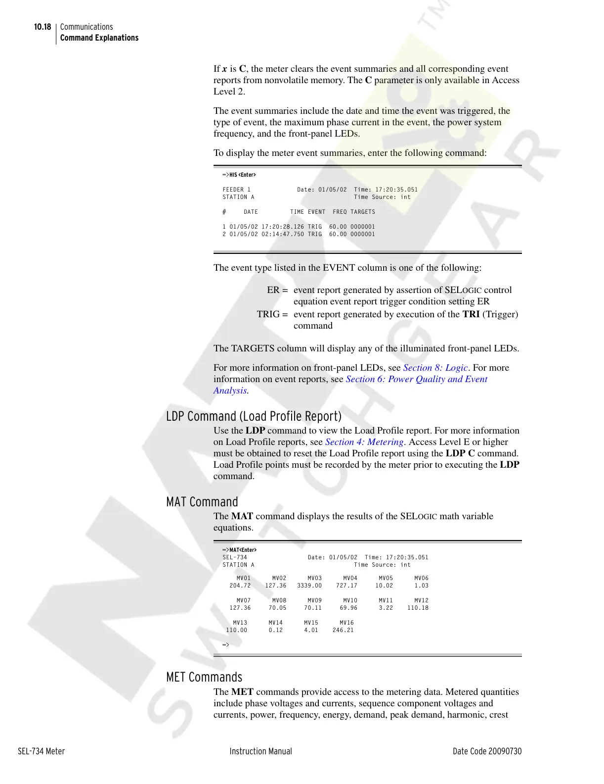 SEL-734 Meter Instruction Manual Date Code 20090730