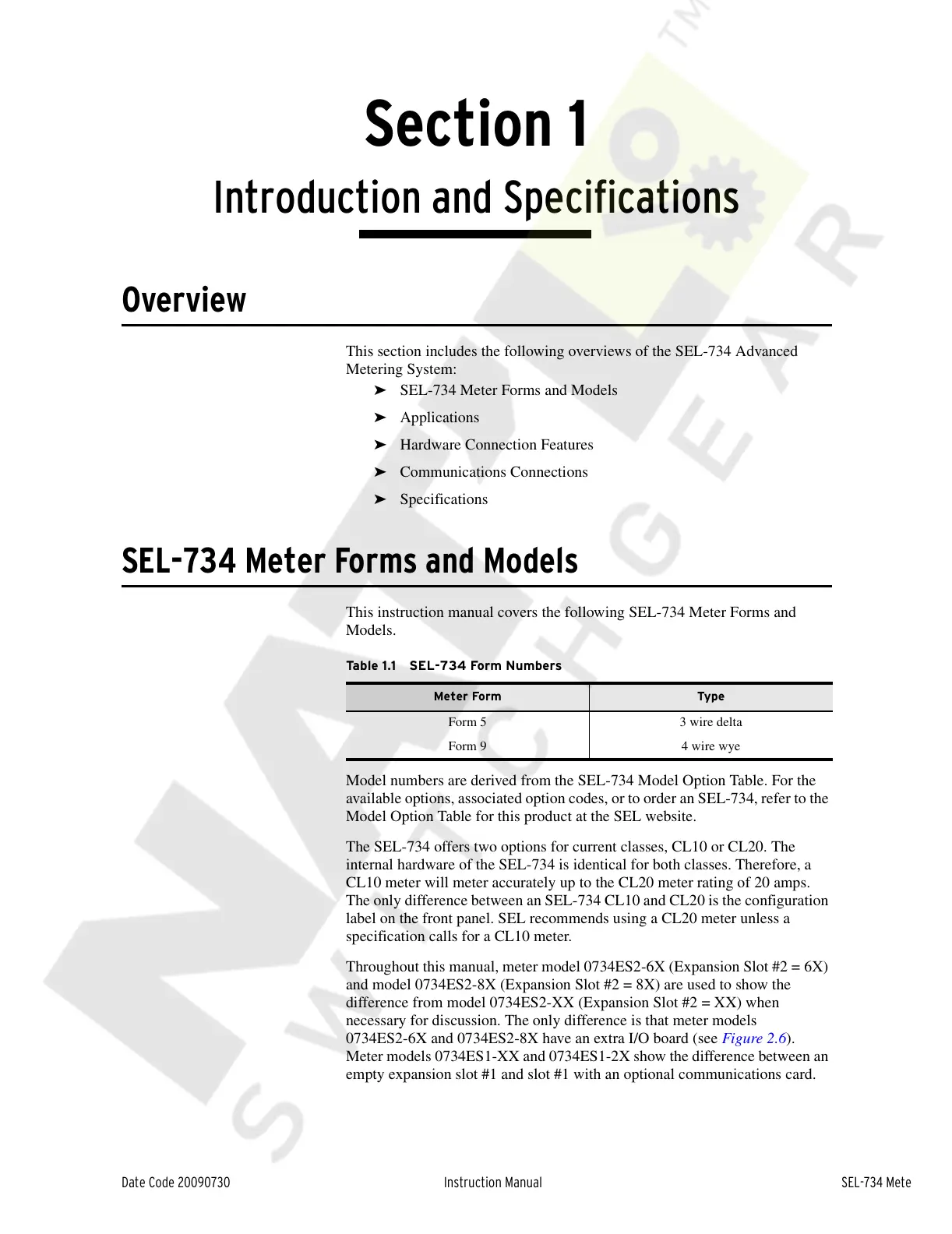 Date Code 20090730 Instruction Manual SEL-734 Meter