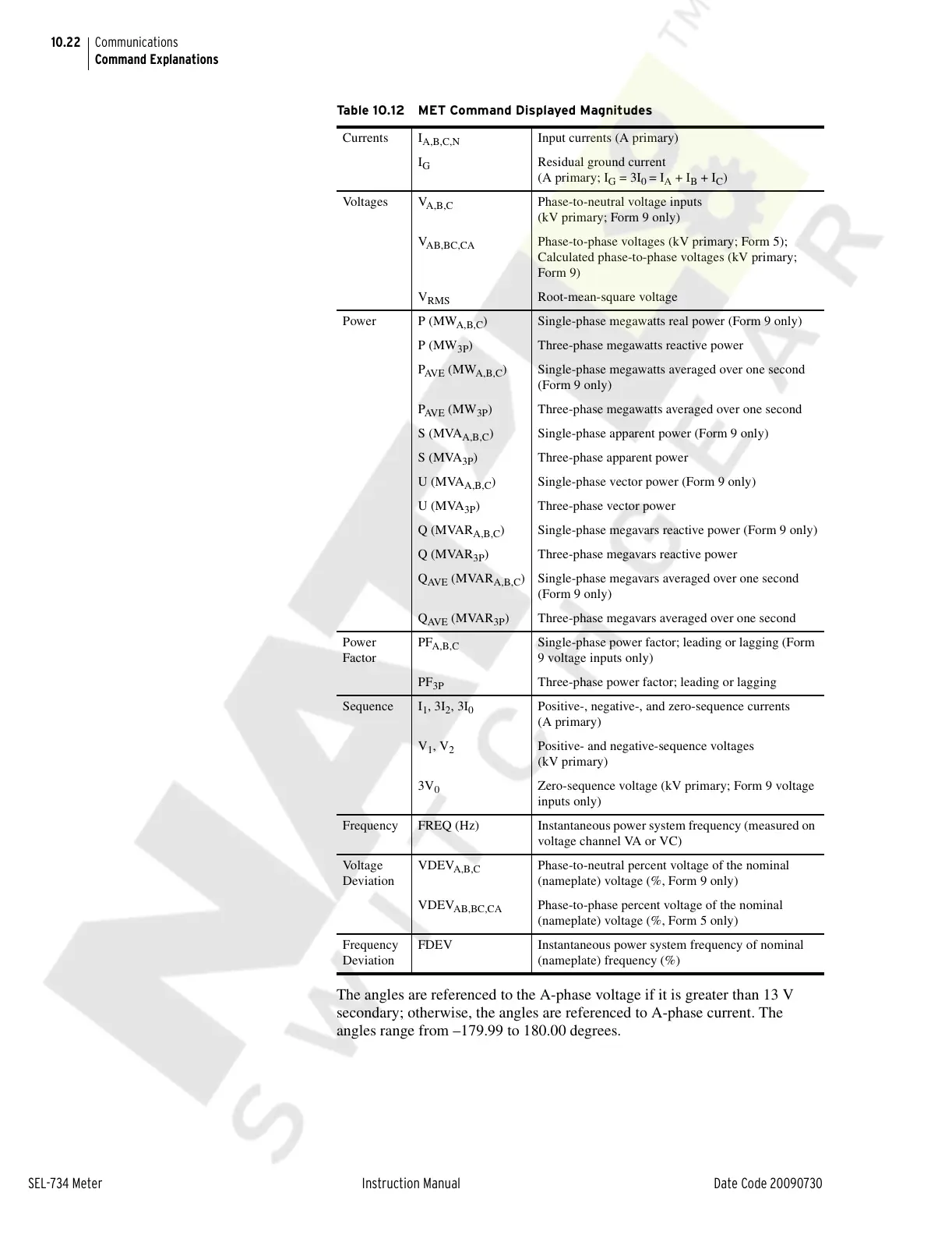 SEL-734 Meter Instruction Manual Date Code 20090730