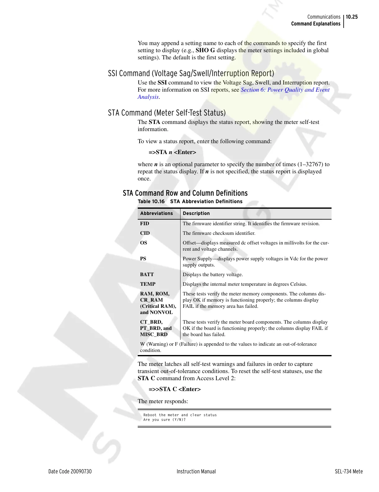 Date Code 20090730 Instruction Manual SEL-734 Meter