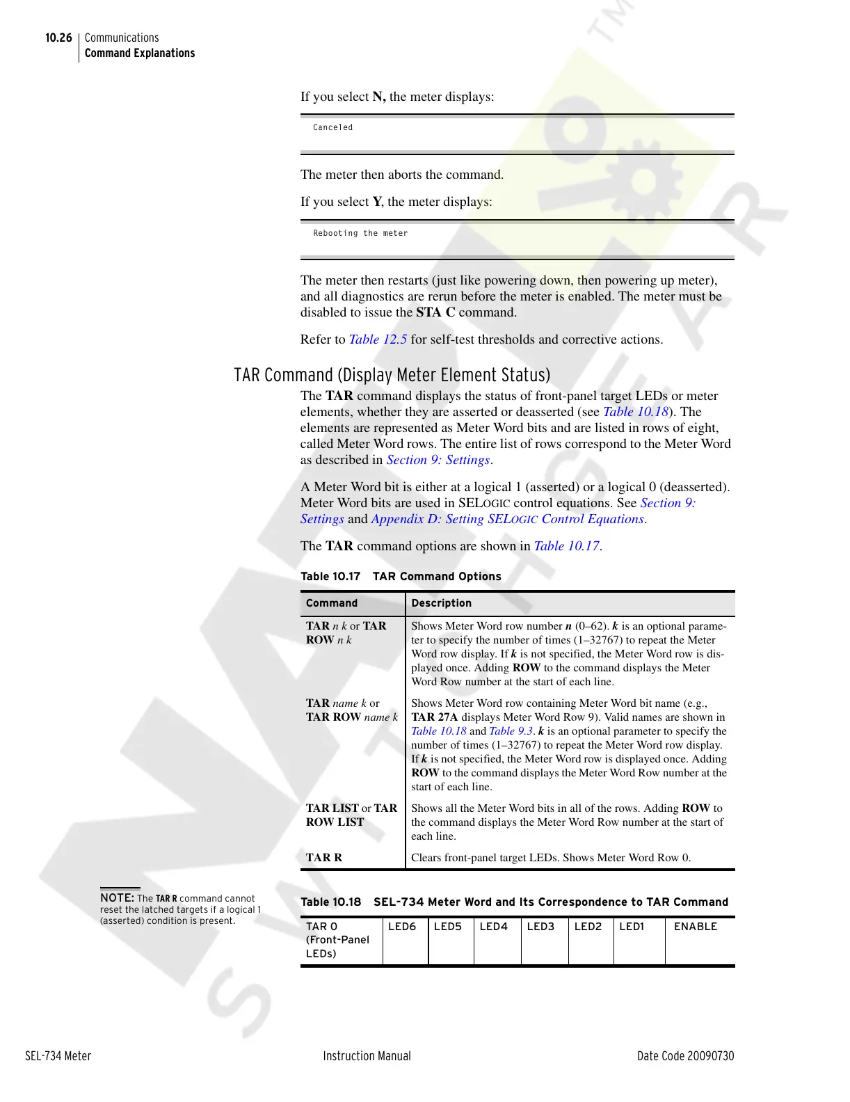 Table 10.18 SEL-734 Meter Word and Its Correspondence to TAR Command