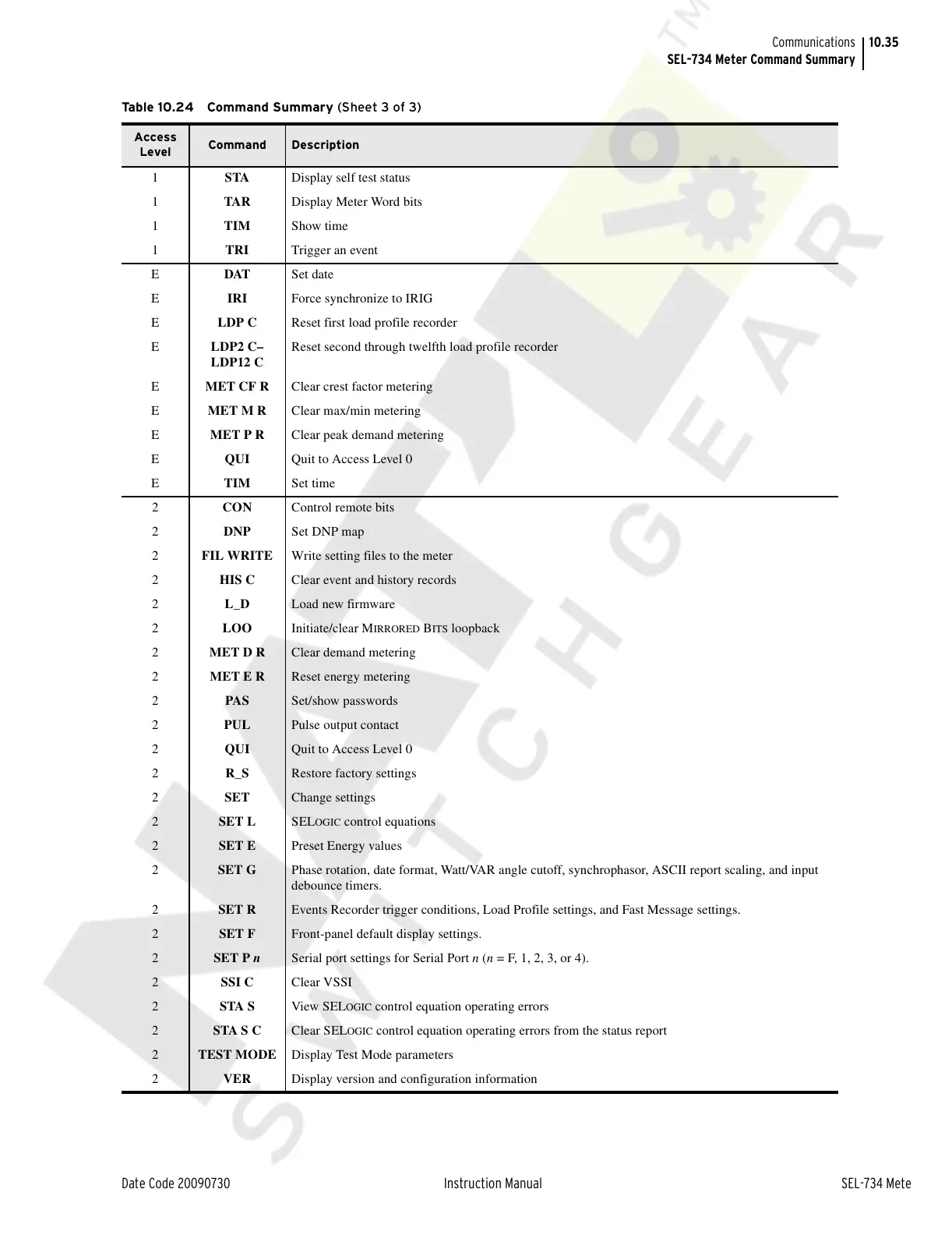 SEL-734 Meter Command Summary