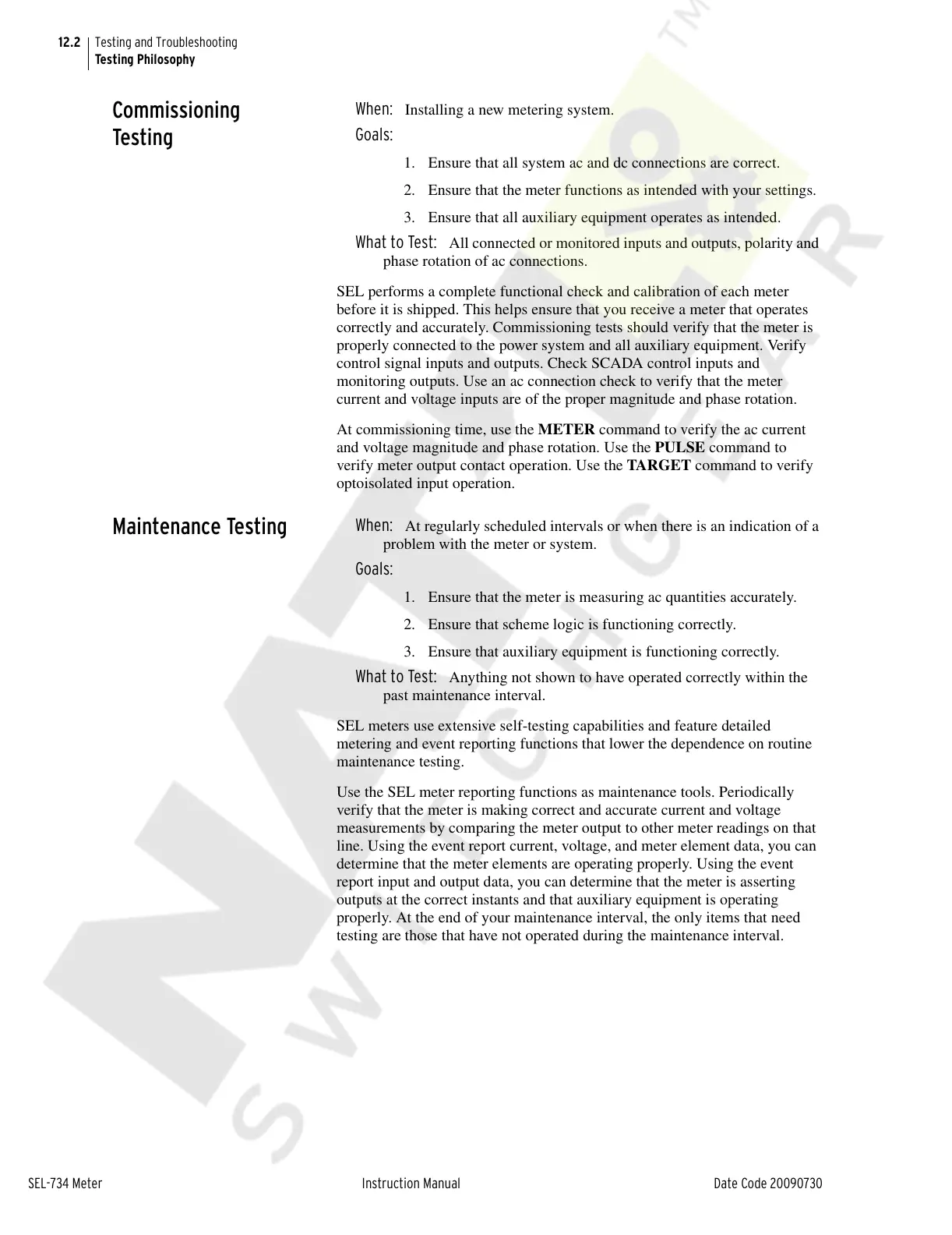 correctly and accurately. Commissioning tests should verify that the meter is