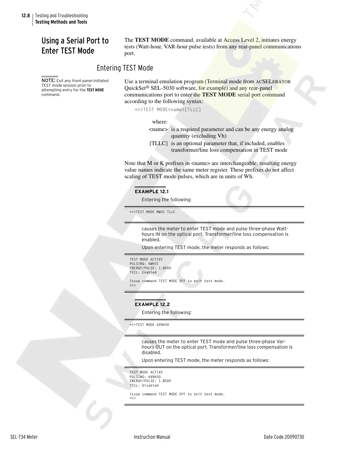 SEL-734 Meter Instruction Manual Date Code 20090730