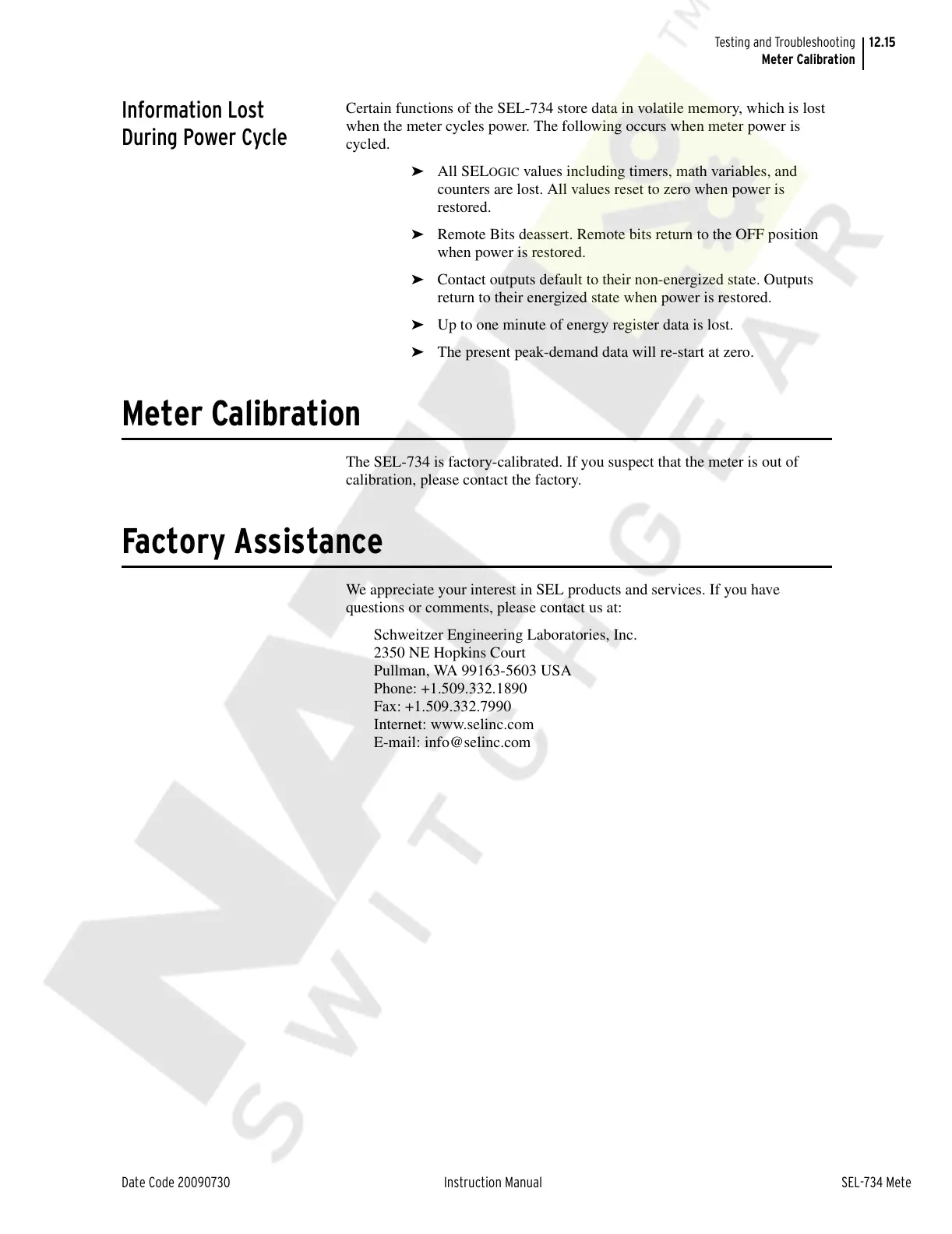 Date Code 20090730 Instruction Manual SEL-734 Meter