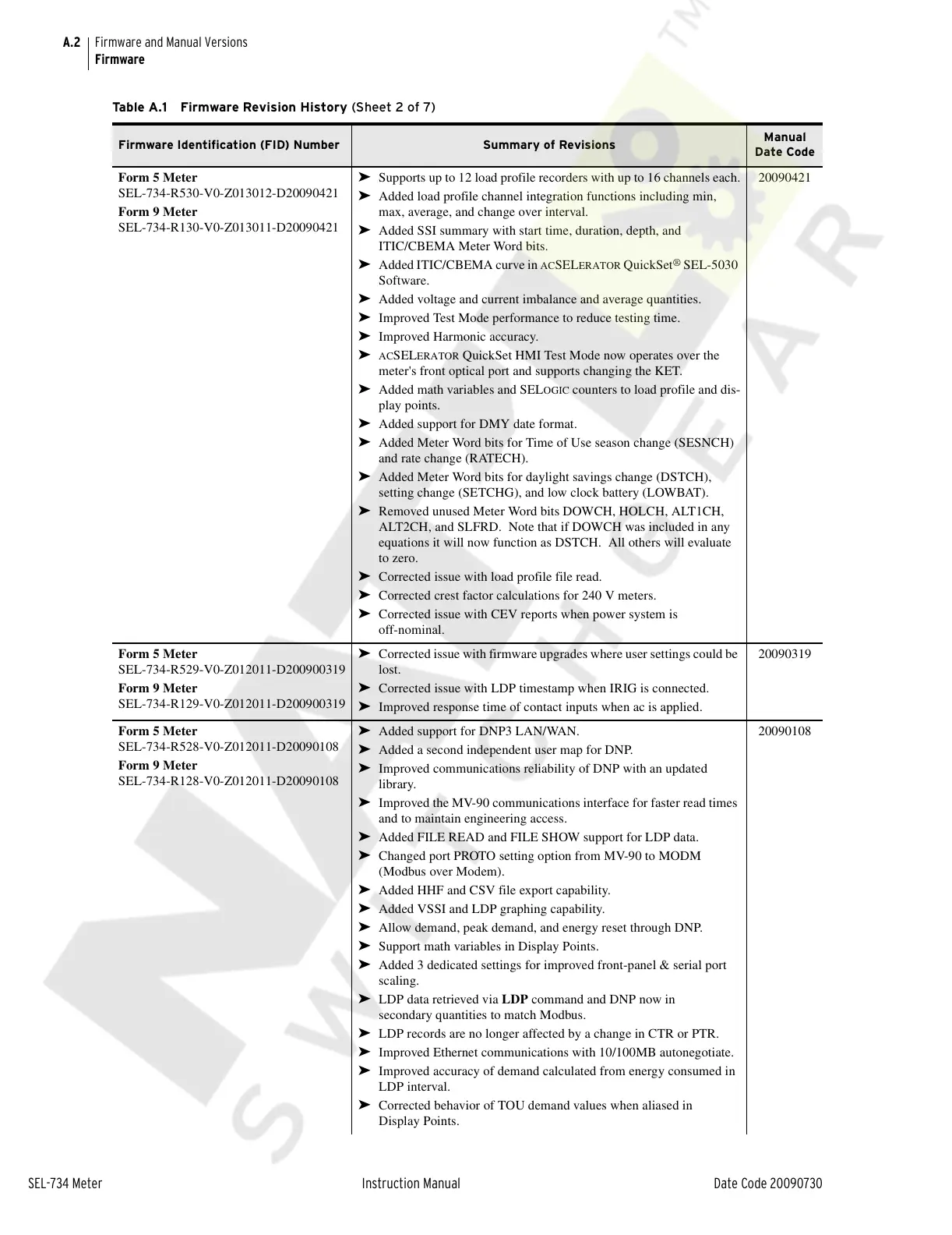 Table A.1 Firmware Revision History (Sheet 2 of 7)