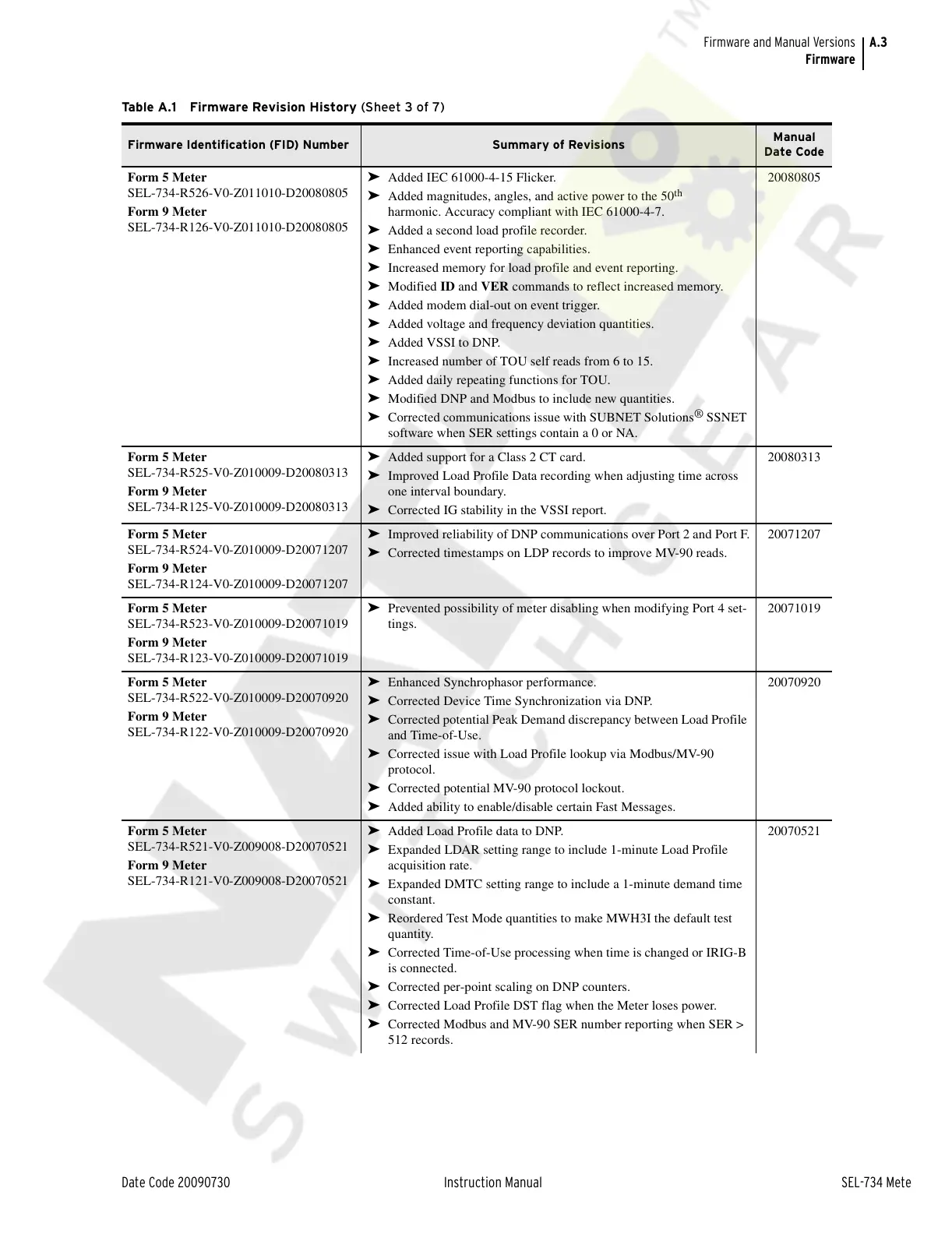 Date Code 20090730 Instruction Manual SEL-734 Meter