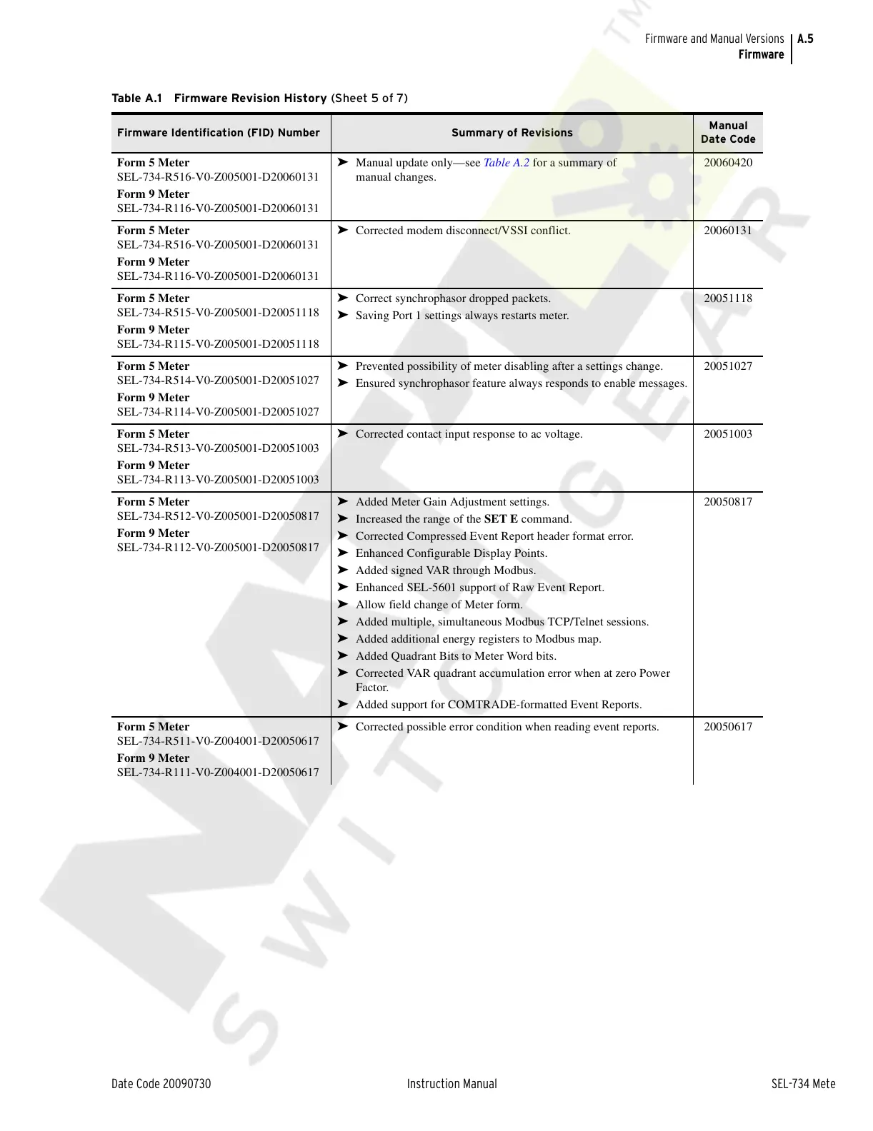 Table A.1 Firmware Revision History (Sheet 5 of 7)