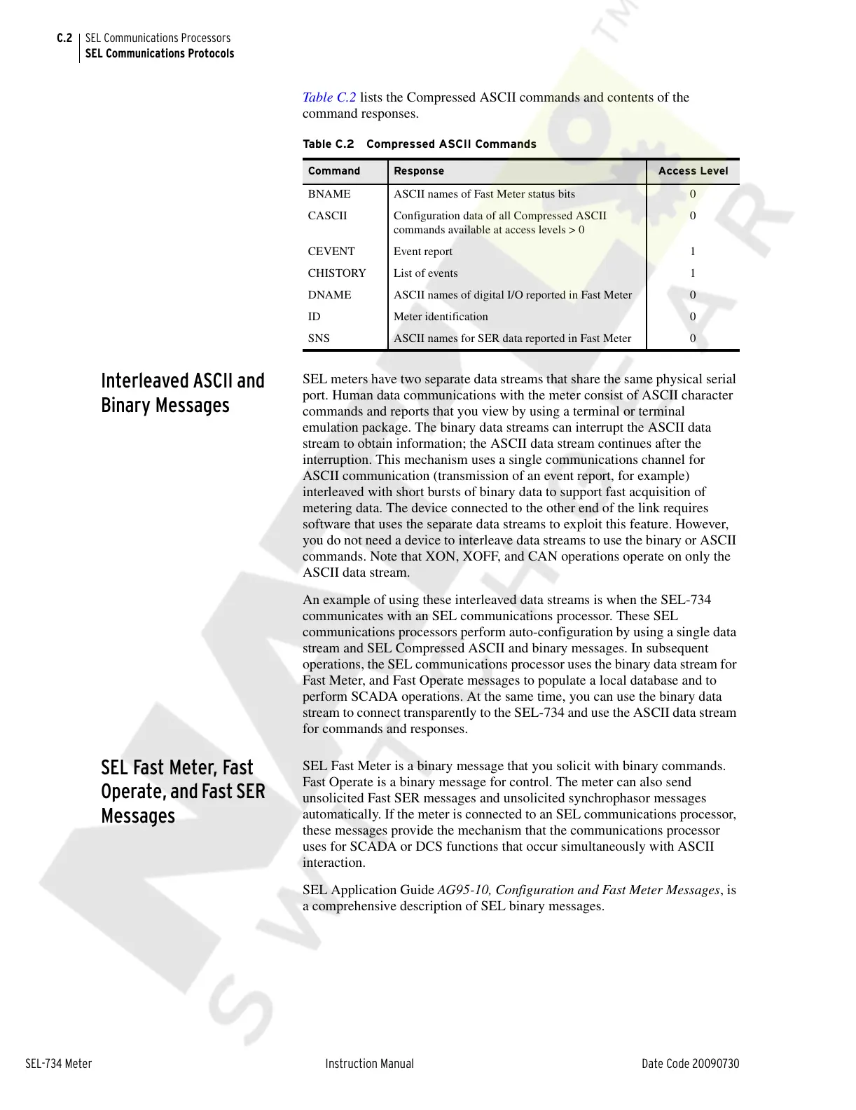 stream and SEL Compressed ASCII and binary messages. In subsequent