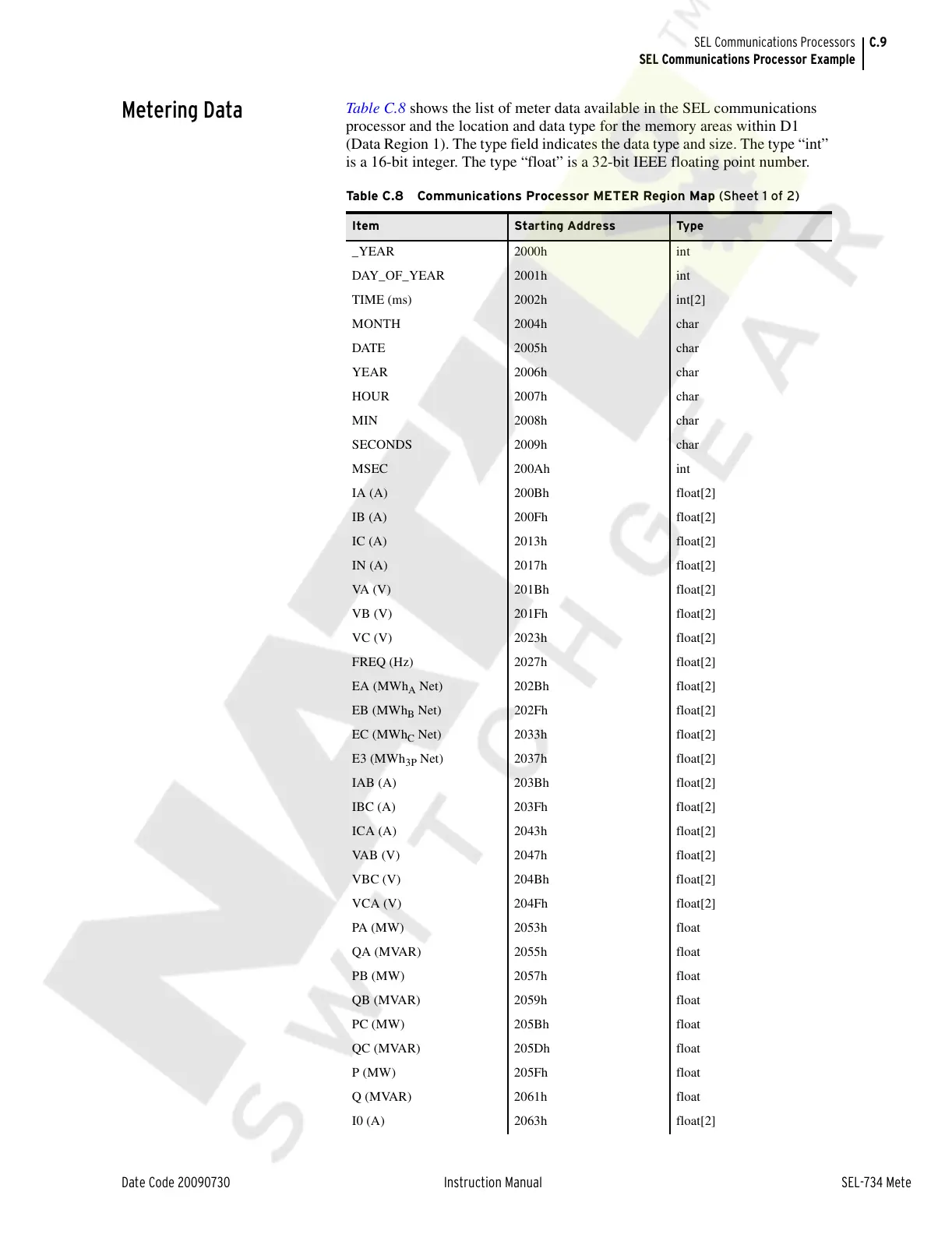 Date Code 20090730 Instruction Manual SEL-734 Meter