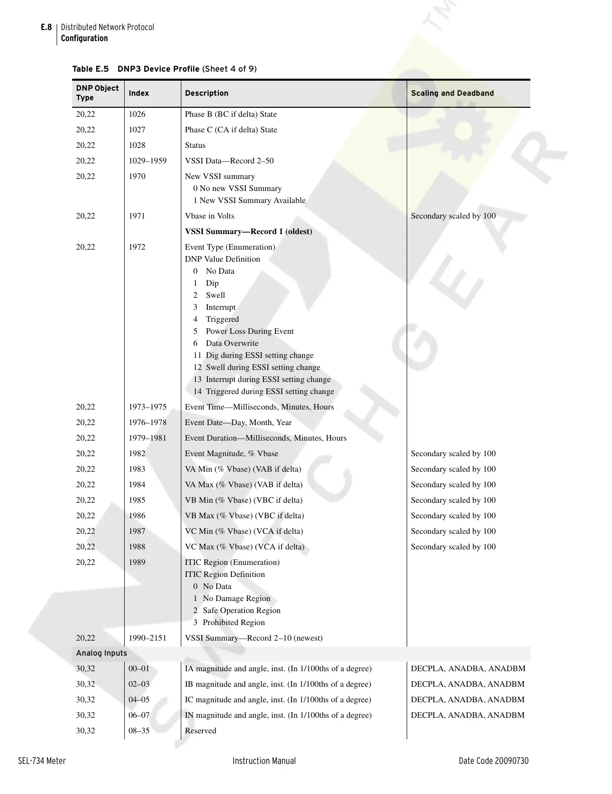 Table E.5 DNP3 Device Profile (Sheet 4 of 9)