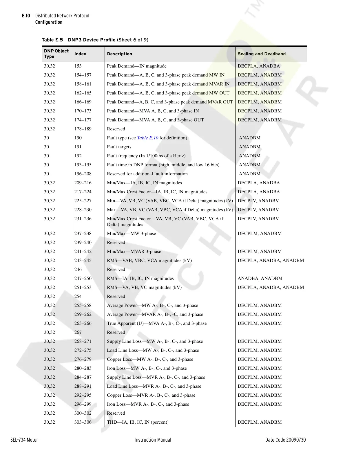 30,32 268–271 Supply Line Loss—MW A-, B-, C-, and 3-phase DECPLM, ANADBM