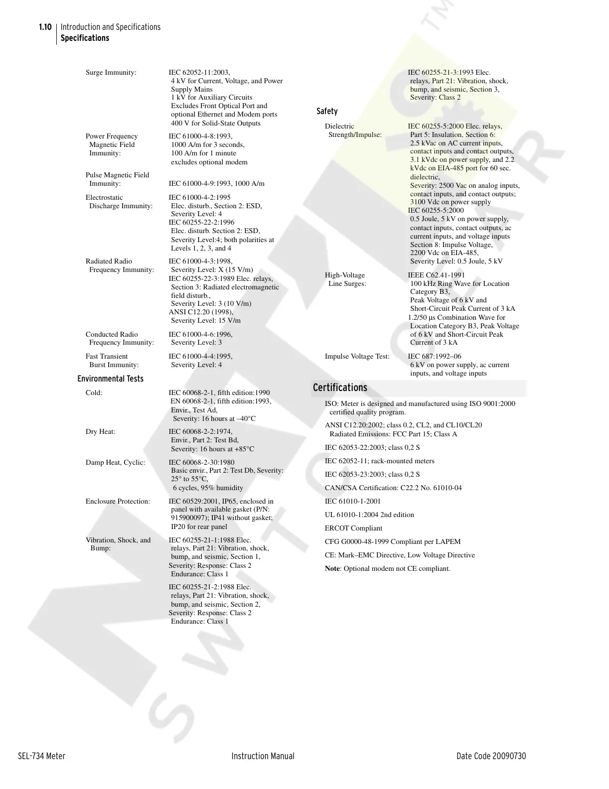 SEL-734 Meter Instruction Manual Date Code 20090730