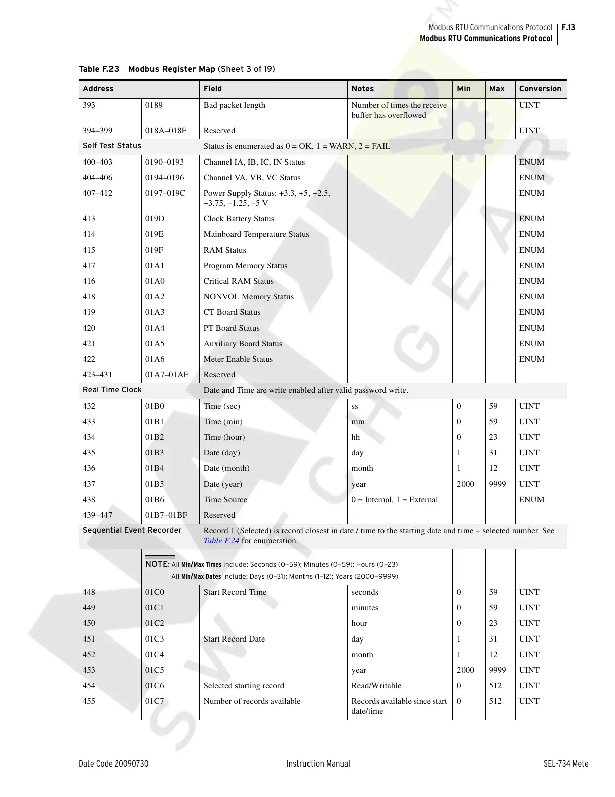 Table F.23 Modbus Register Map (Sheet 3 of 19)