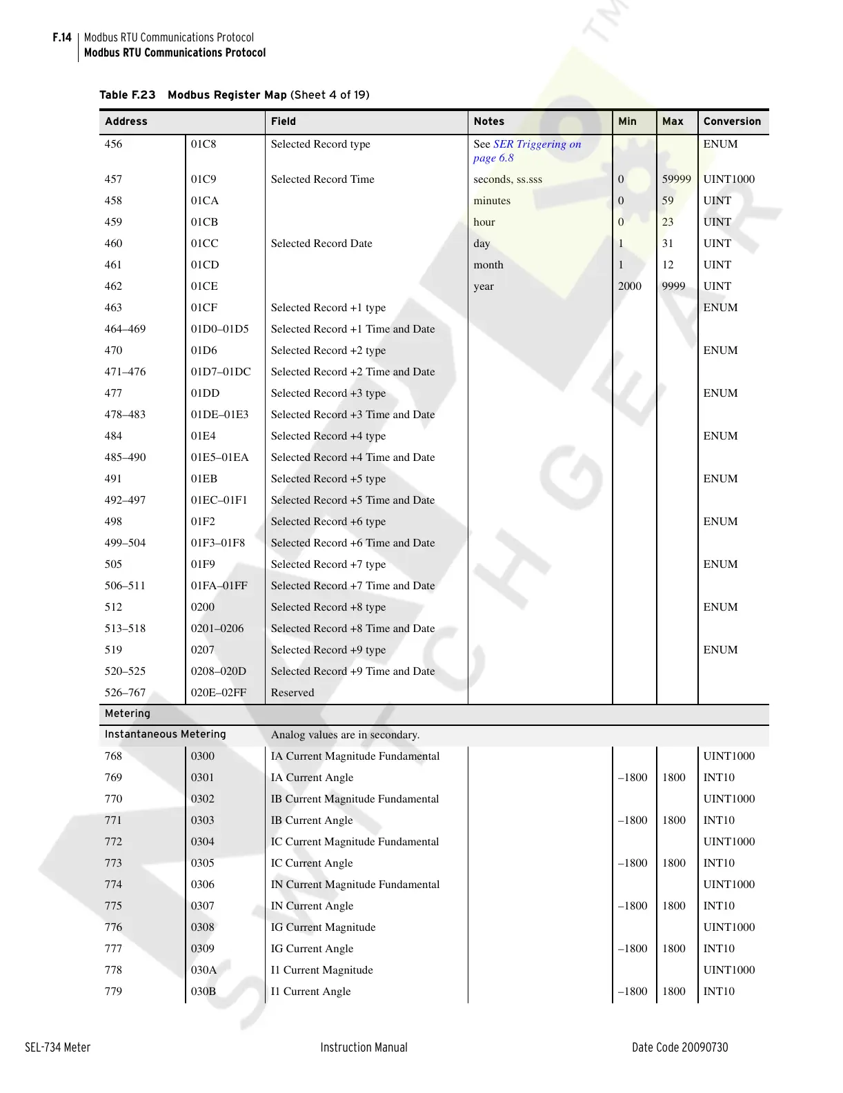 Table F.23 Modbus Register Map (Sheet 4 of 19)
