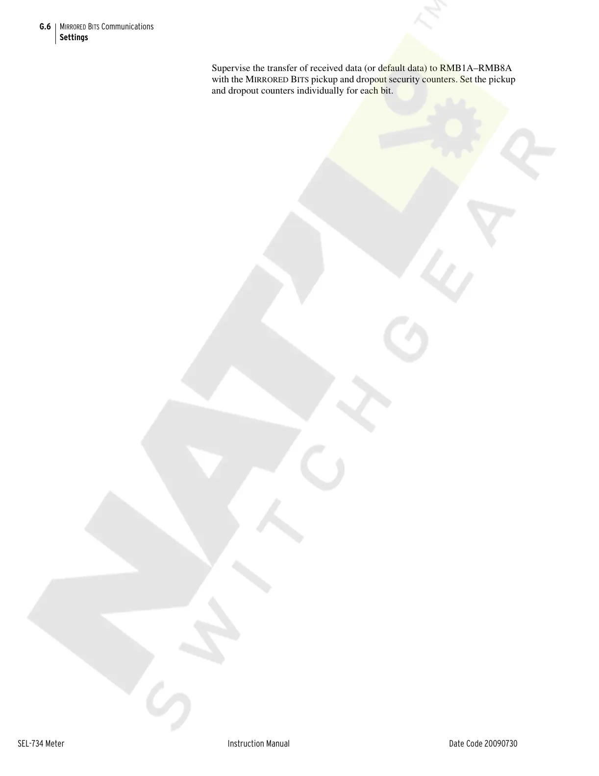 IRRORED BITS pickup and dropout security counters. Set the pickup