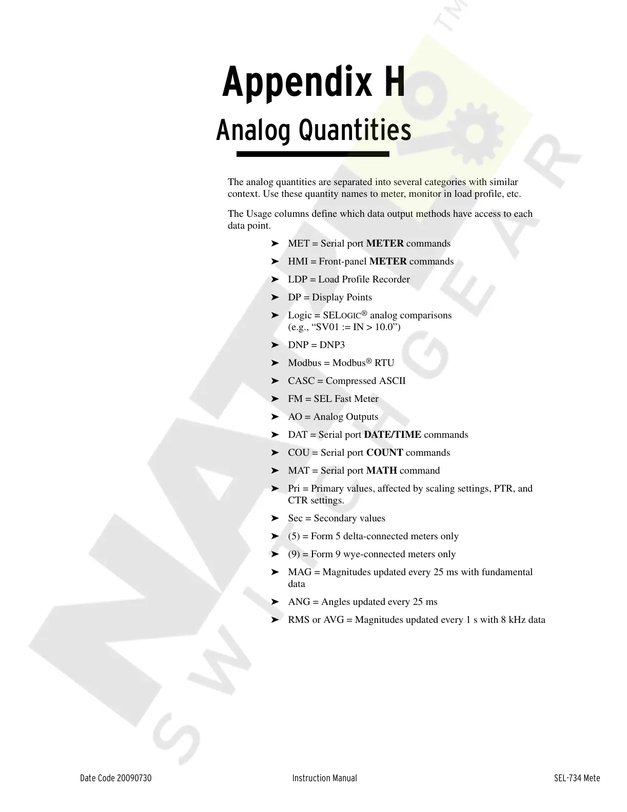 Date Code 20090730 Instruction Manual SEL-734 Meter