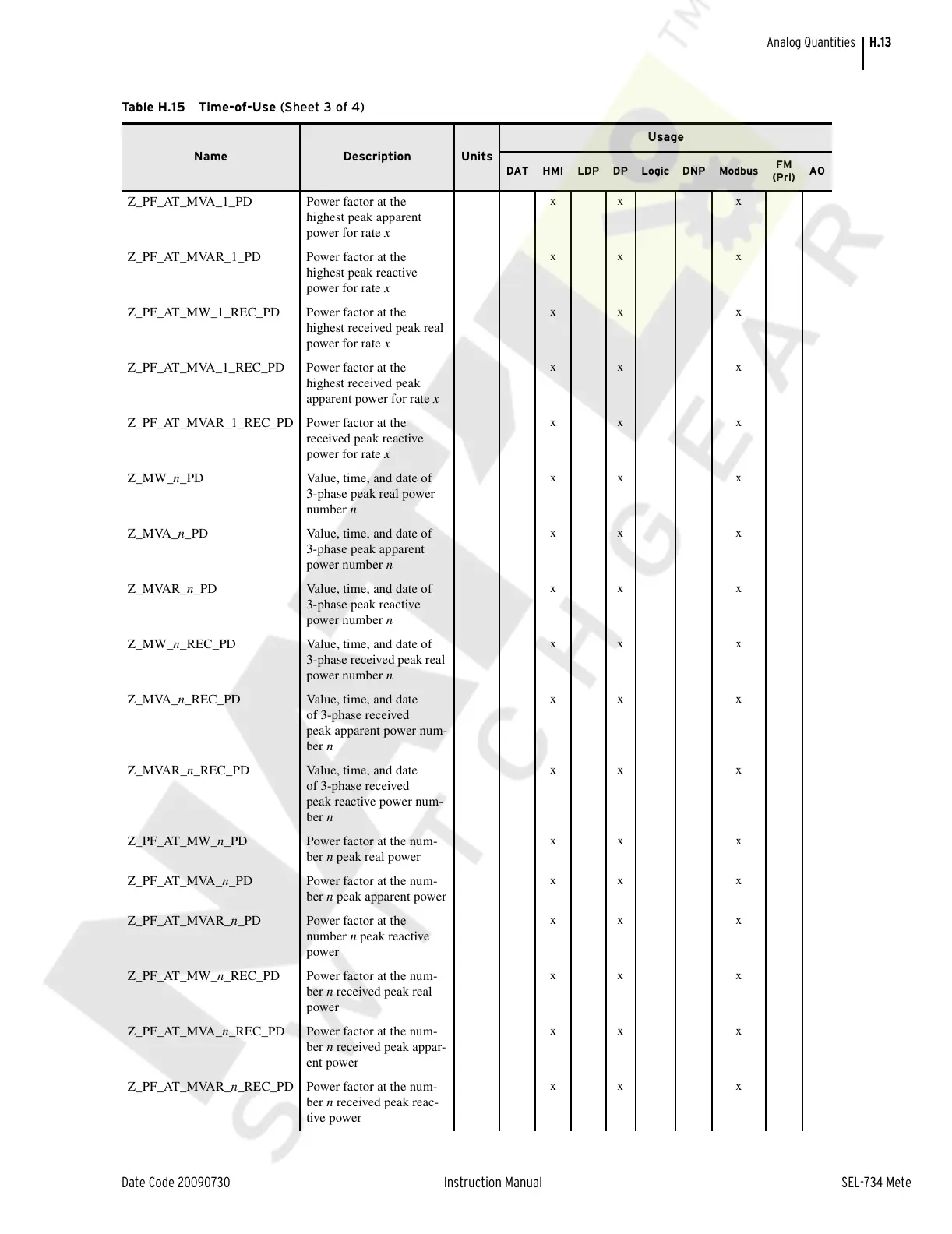 Table H.15 Time-of-Use (Sheet 3 of 4)