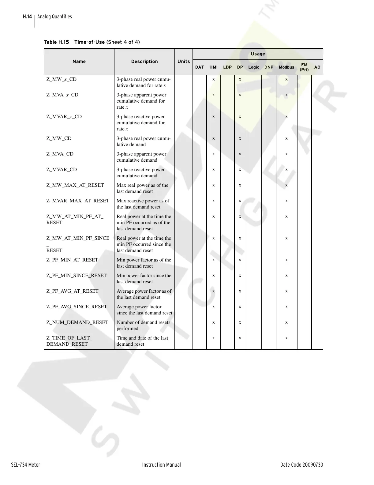 Table H.15 Time-of-Use (Sheet 4 of 4)
