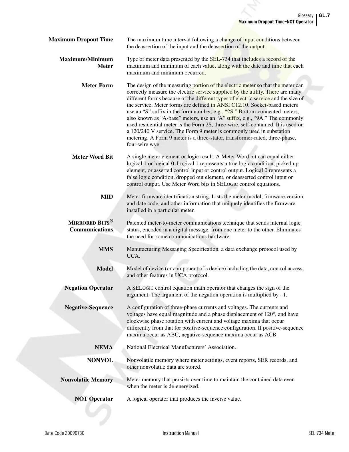 Date Code 20090730 Instruction Manual SEL-734 Meter