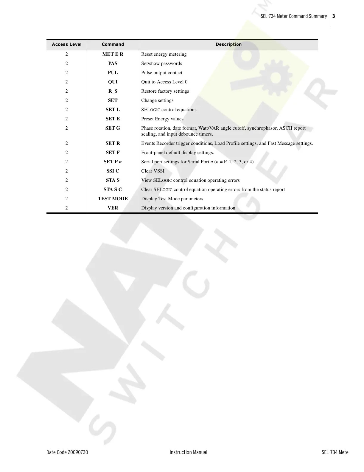 SEL-734 Meter Command Summary