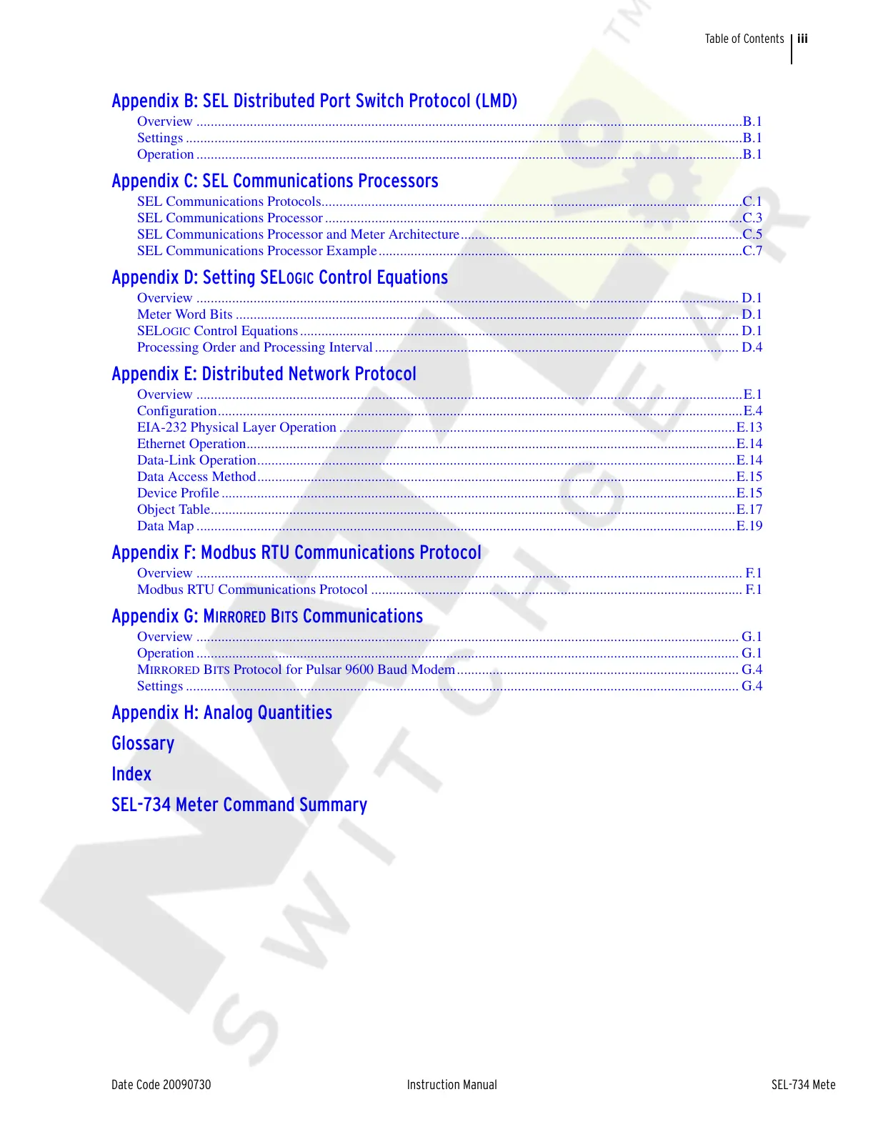 Date Code 20090730 Instruction Manual SEL-734 Meter