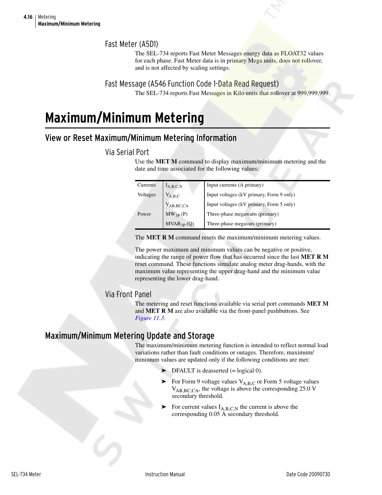 SEL-734 Meter Instruction Manual Date Code 20090730