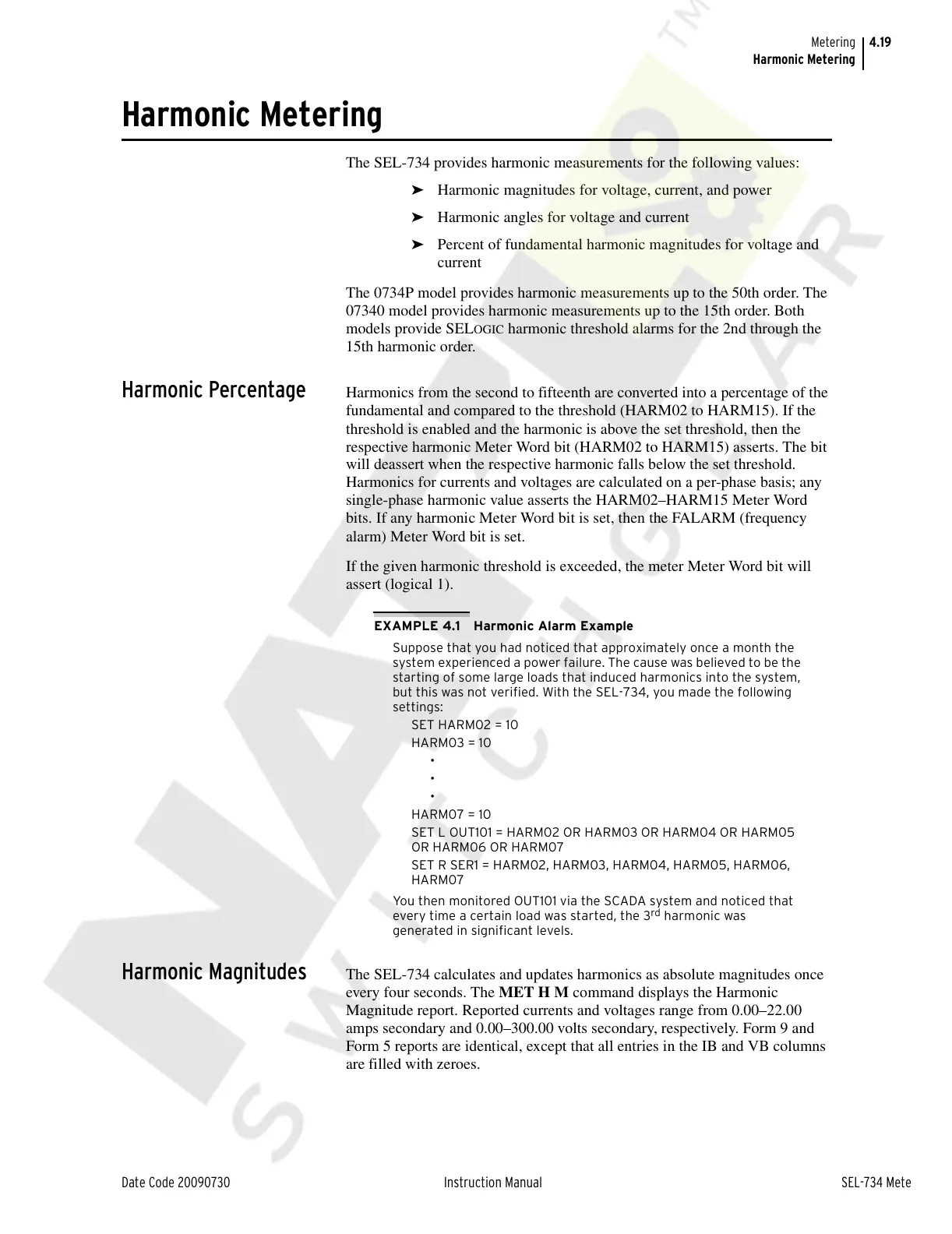 Harmonic Magnitudes The SEL-734 calculates and updates harmonics as absolute magnitudes once