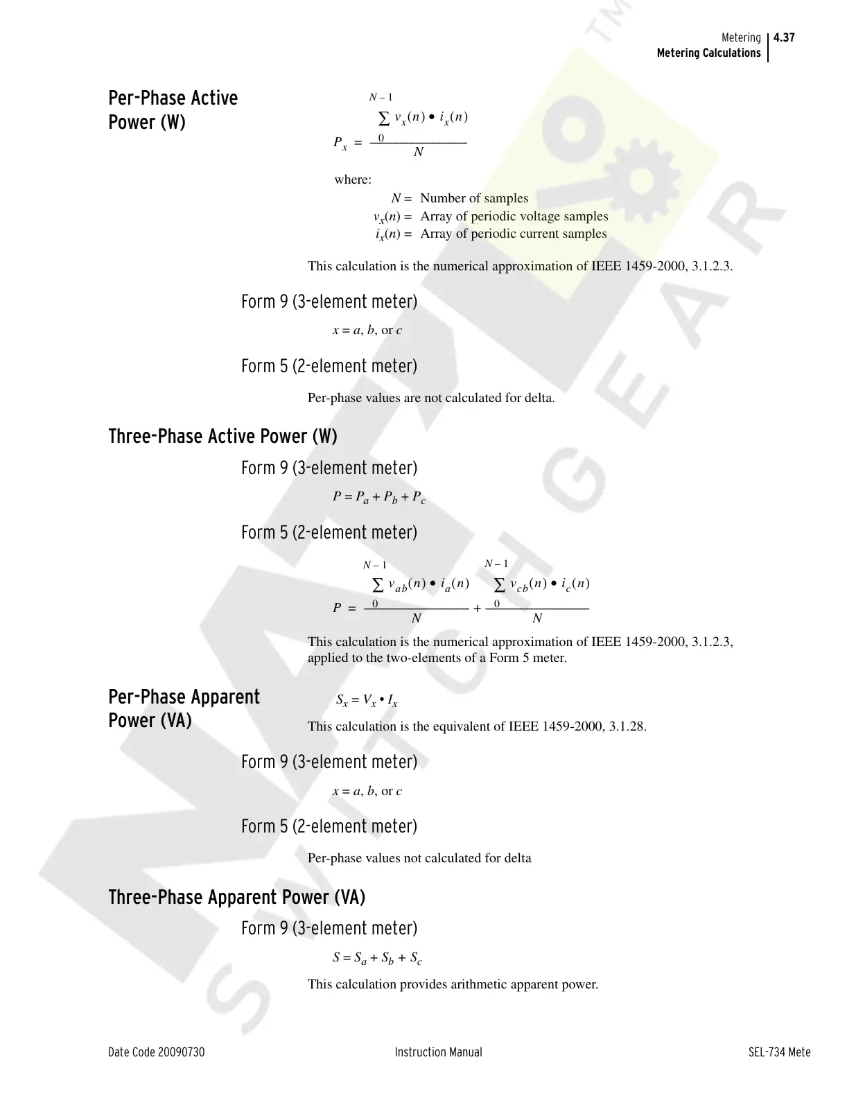 Date Code 20090730 Instruction Manual SEL-734 Meter
