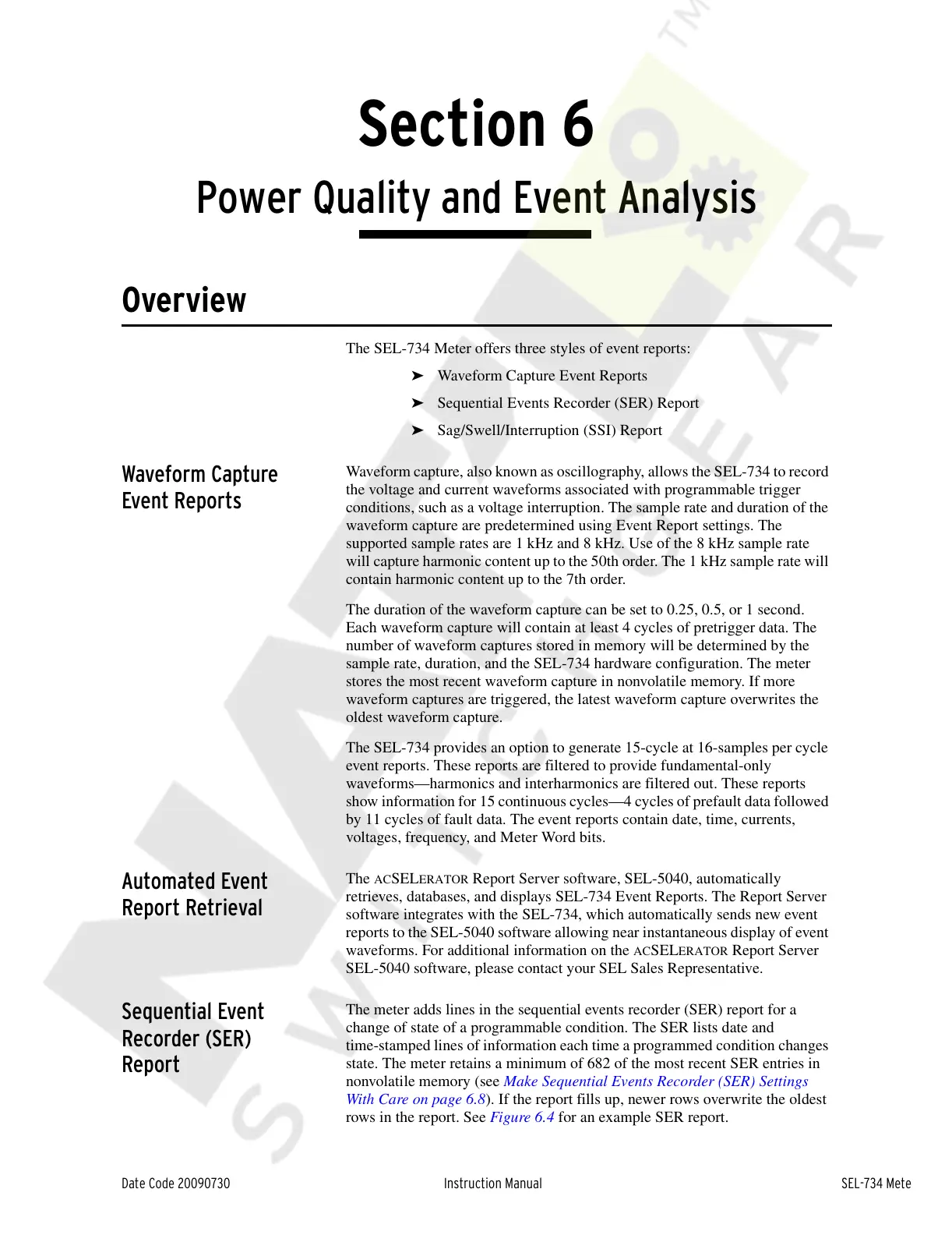 Date Code 20090730 Instruction Manual SEL-734 Meter