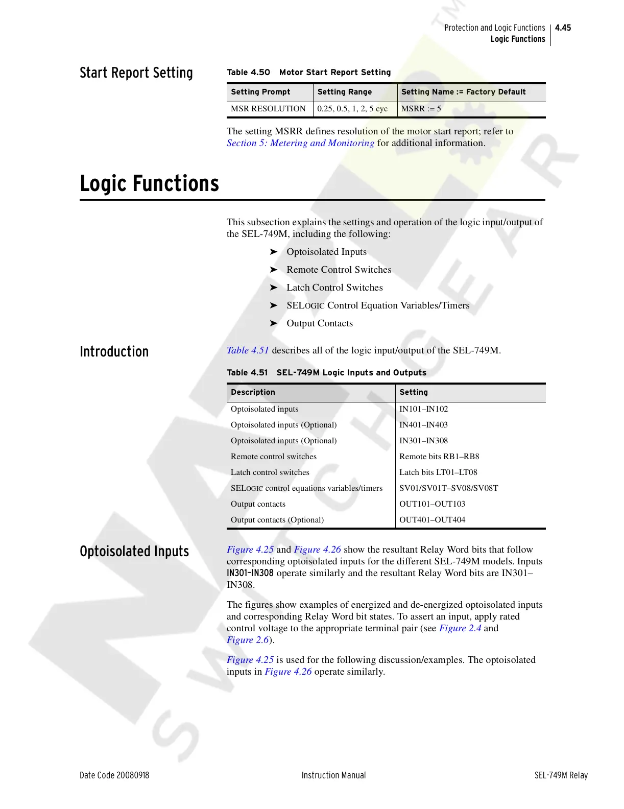 Table 4.51 SEL-749M Logic Inputs and Outputs