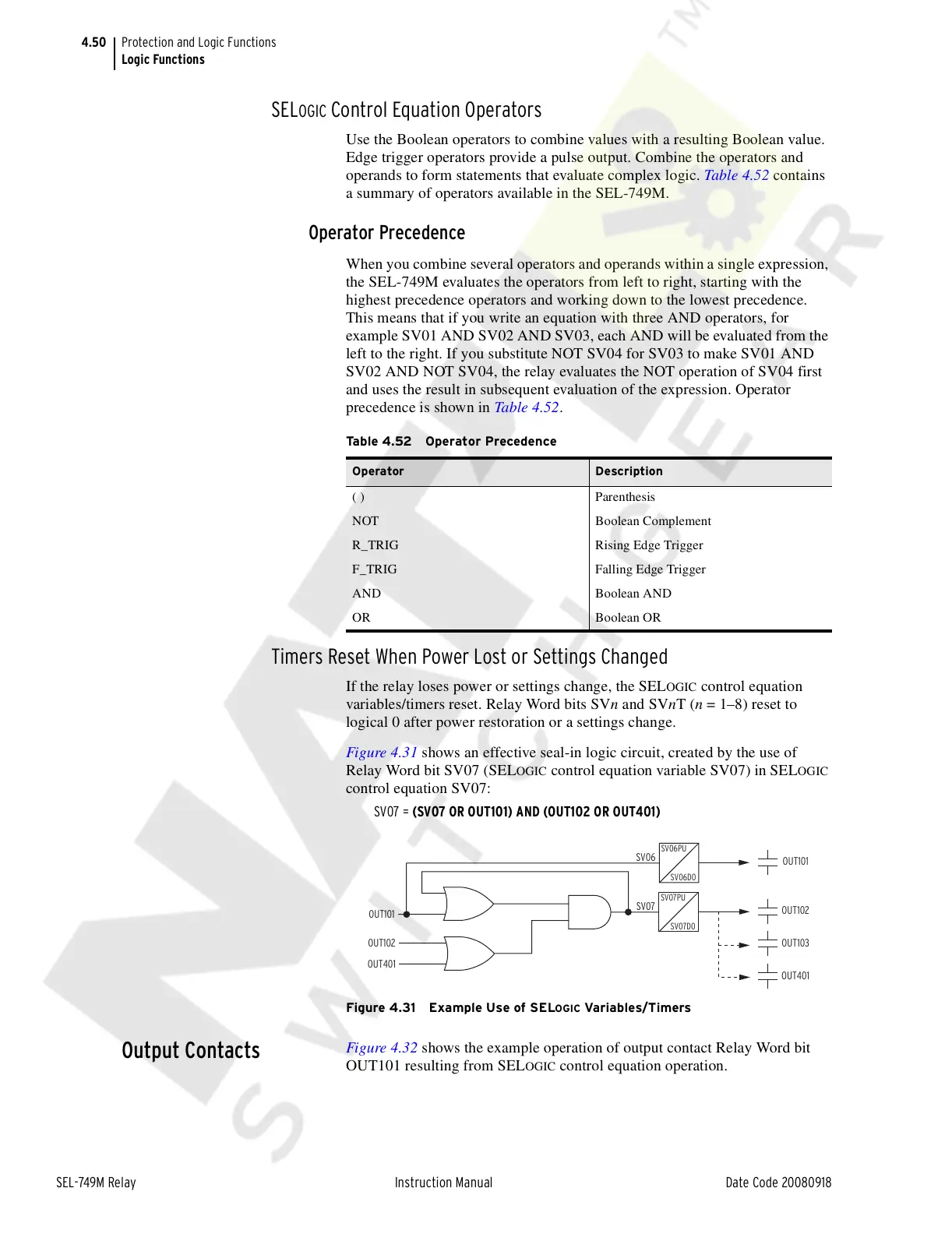Figure 4.31 Example Use of SELOGIC Variables/Timers