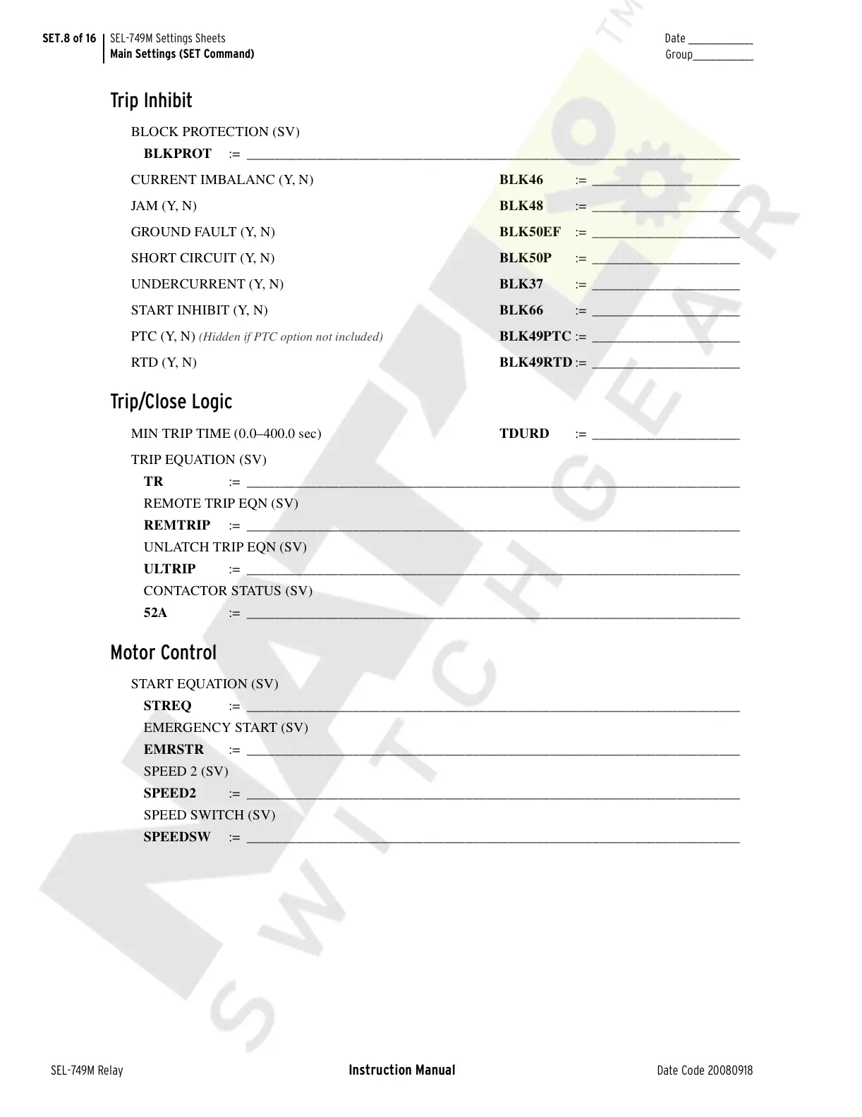 SEL-749M Relay Instruction Manual Date Code 20080918