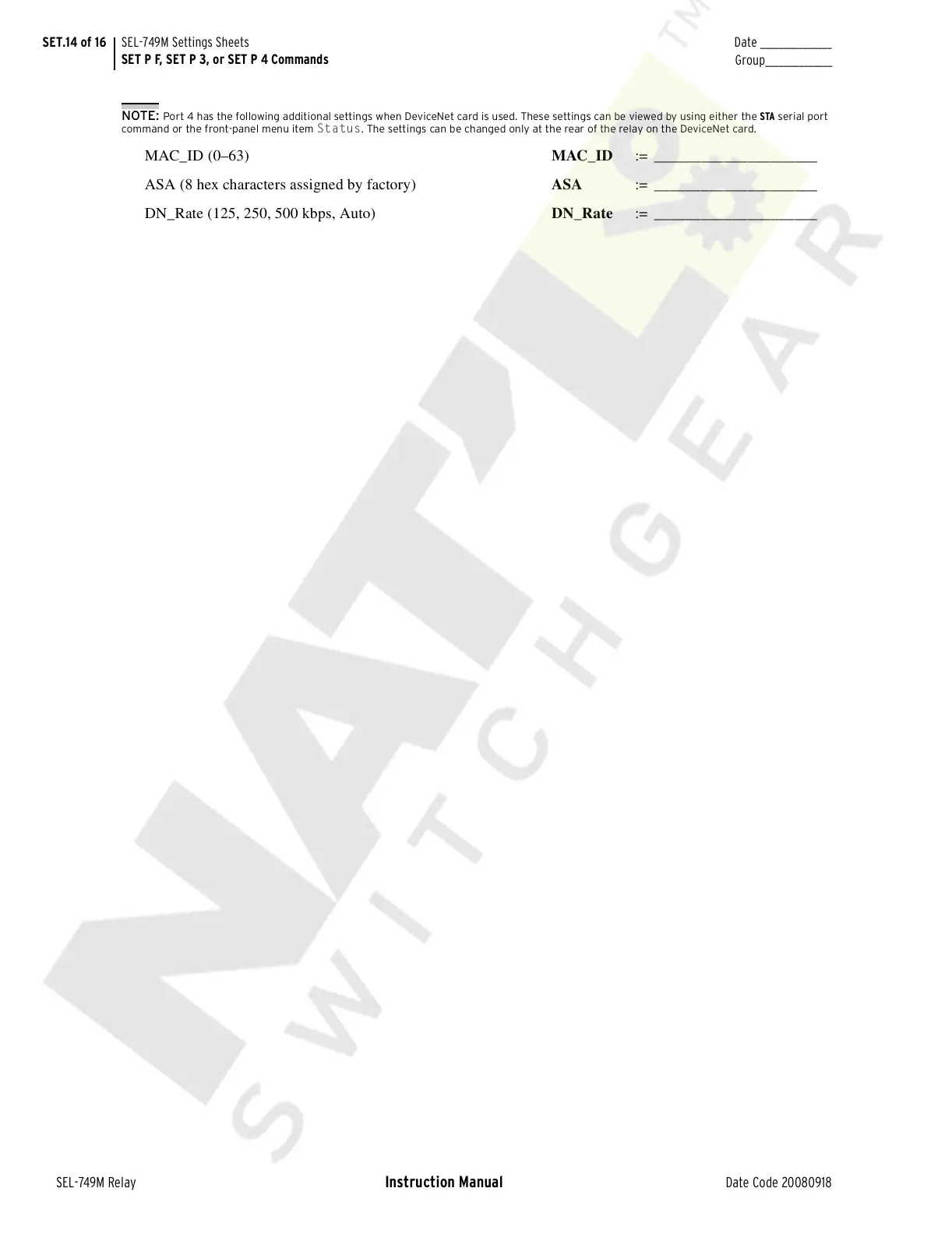 Status. The settings can be changed only at the rear of the relay on the DeviceNet card.