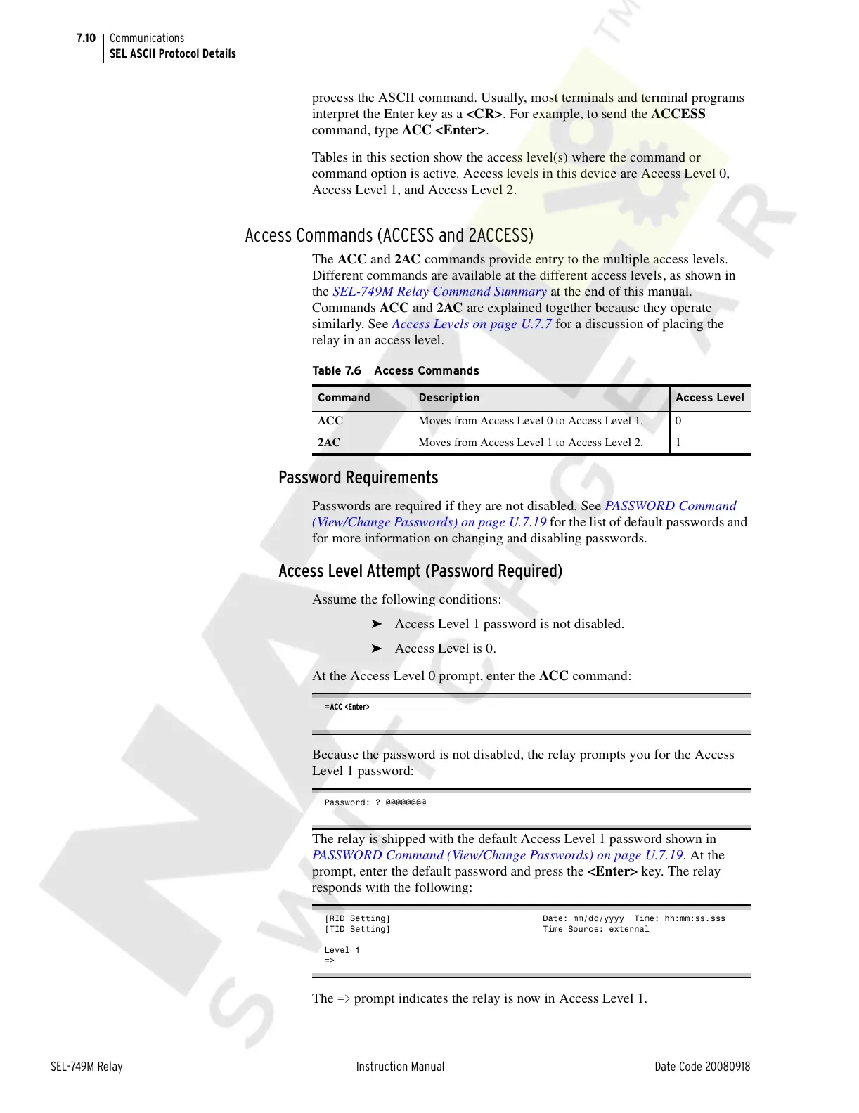 The ACC and 2AC commands provide entry to the multiple access levels.