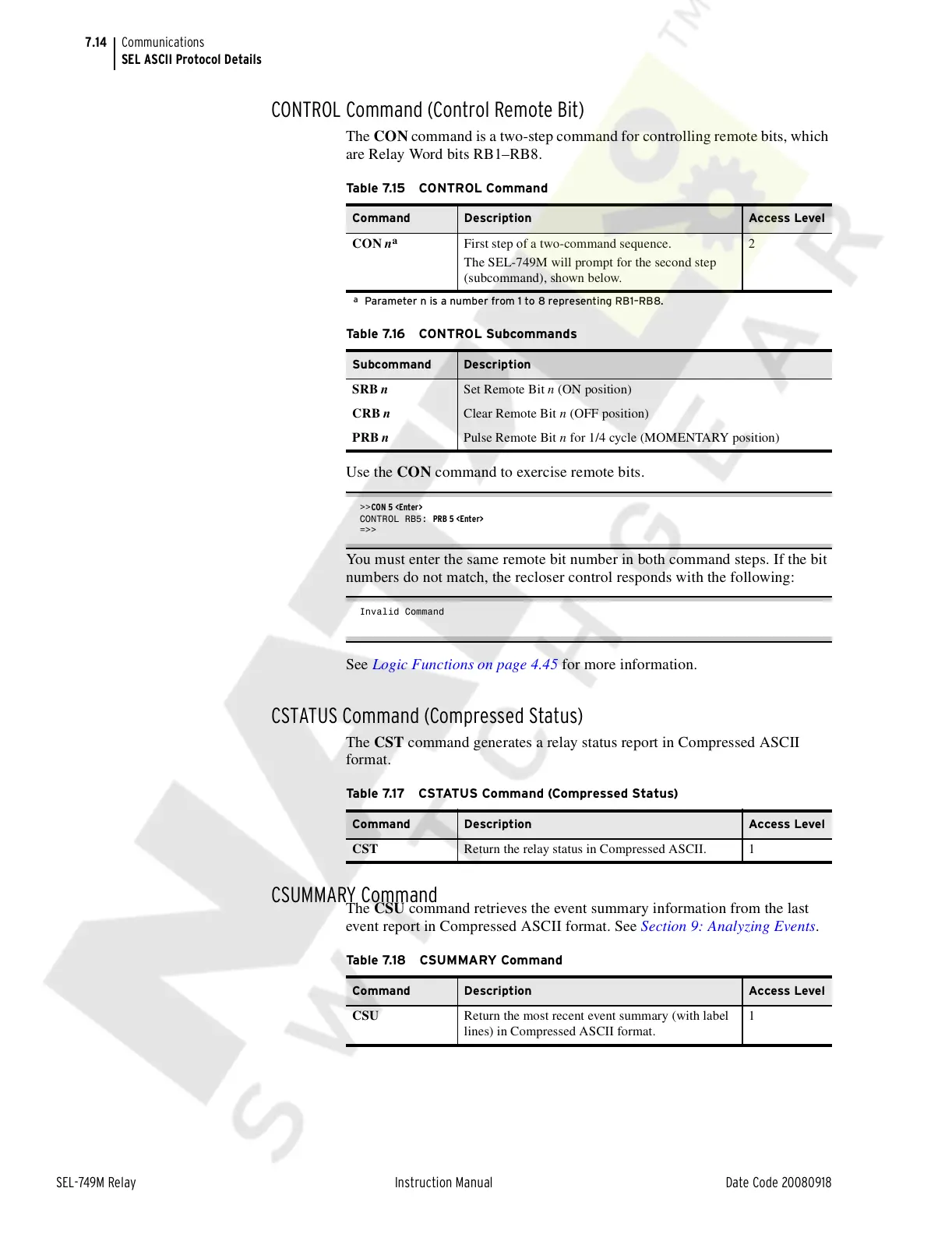 CONTROL Command (Control Remote Bit)