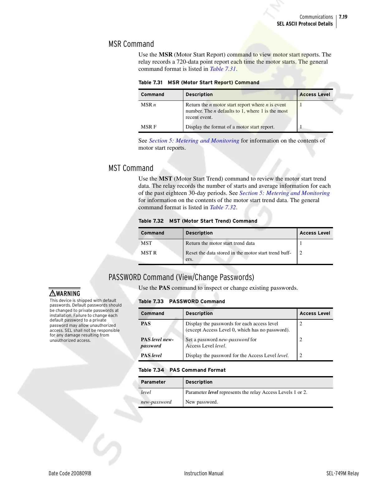 Table 7.31 MSR (Motor Start Report) Command