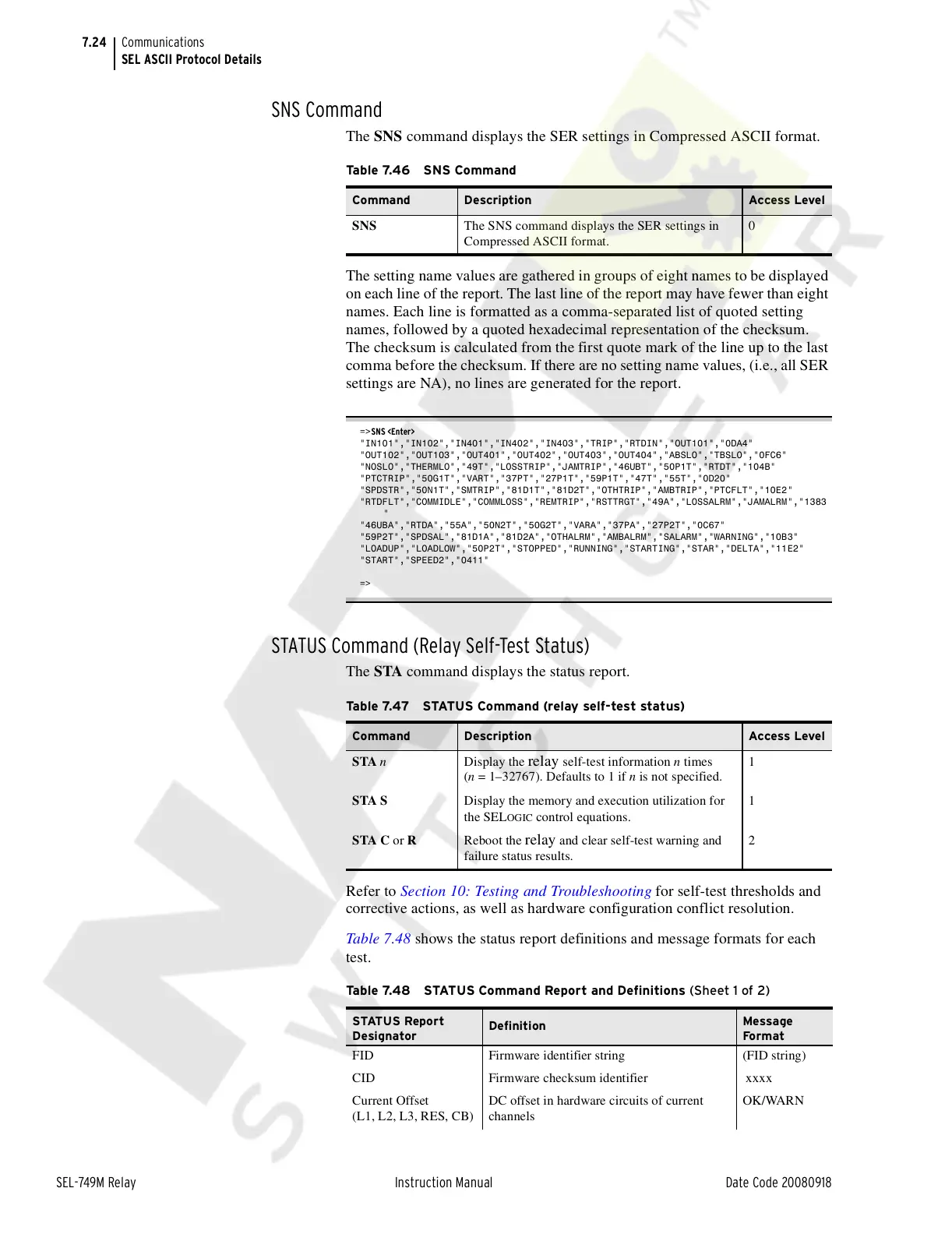 SEL-749M Relay Instruction Manual Date Code 20080918