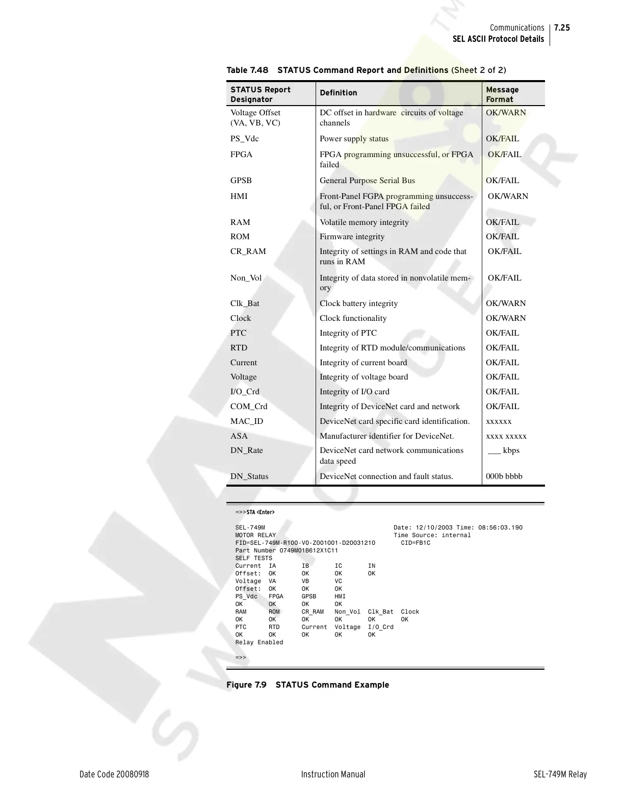Table 7.48 STATUS Command Report and Definitions (Sheet 2 of 2)