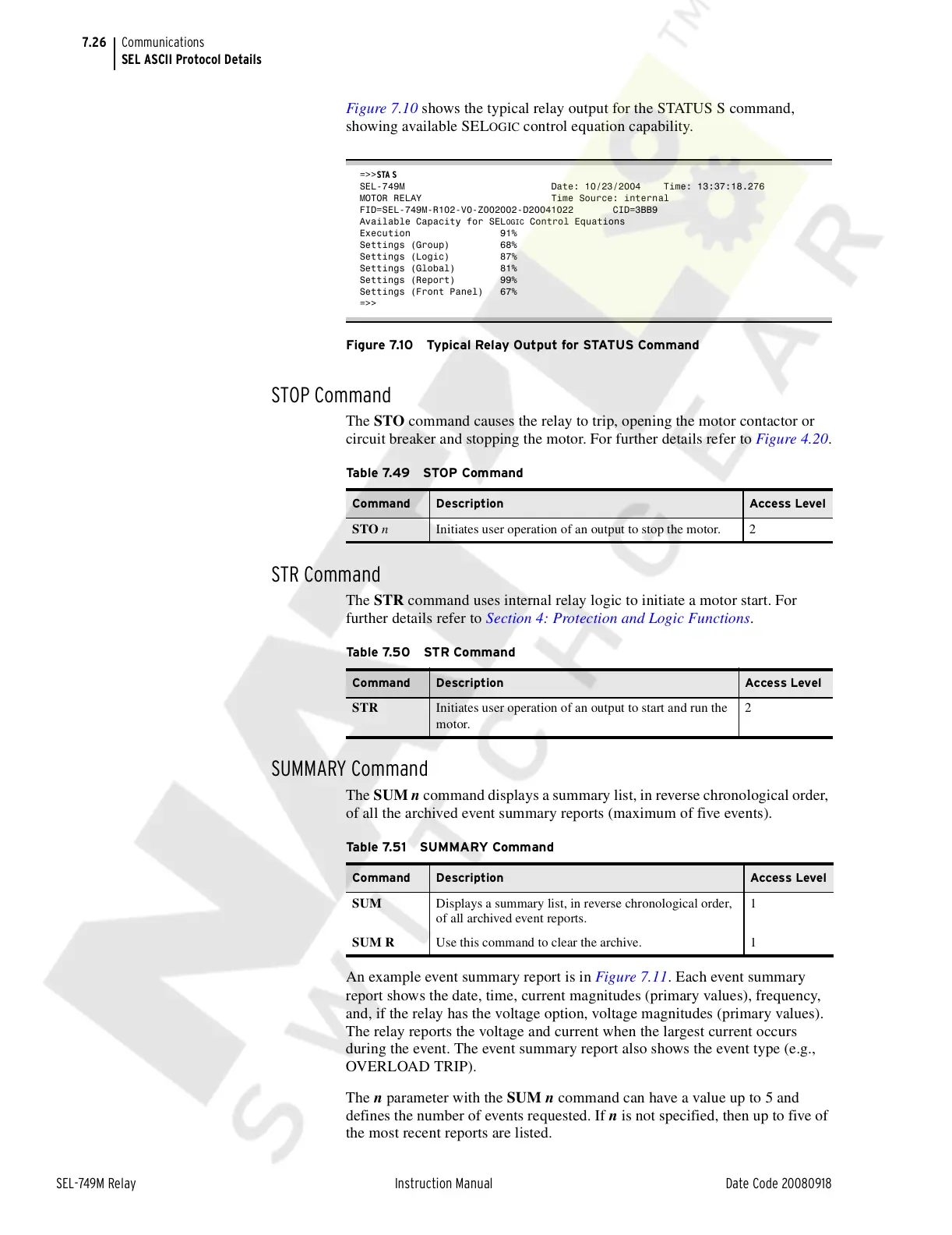 SEL-749M Relay Instruction Manual Date Code 20080918