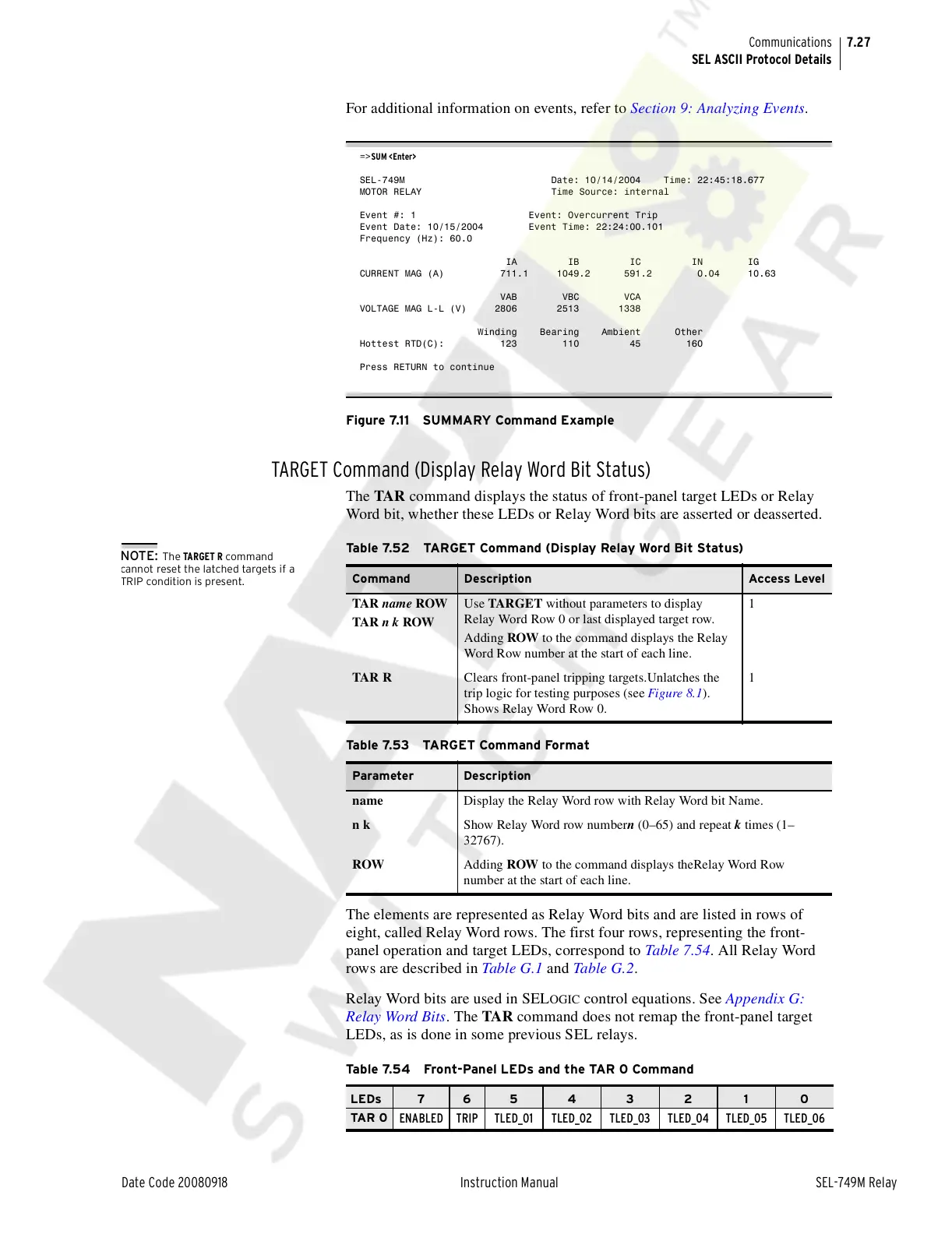 Table 7.52 TARGET Command (Display Relay Word Bit Status)