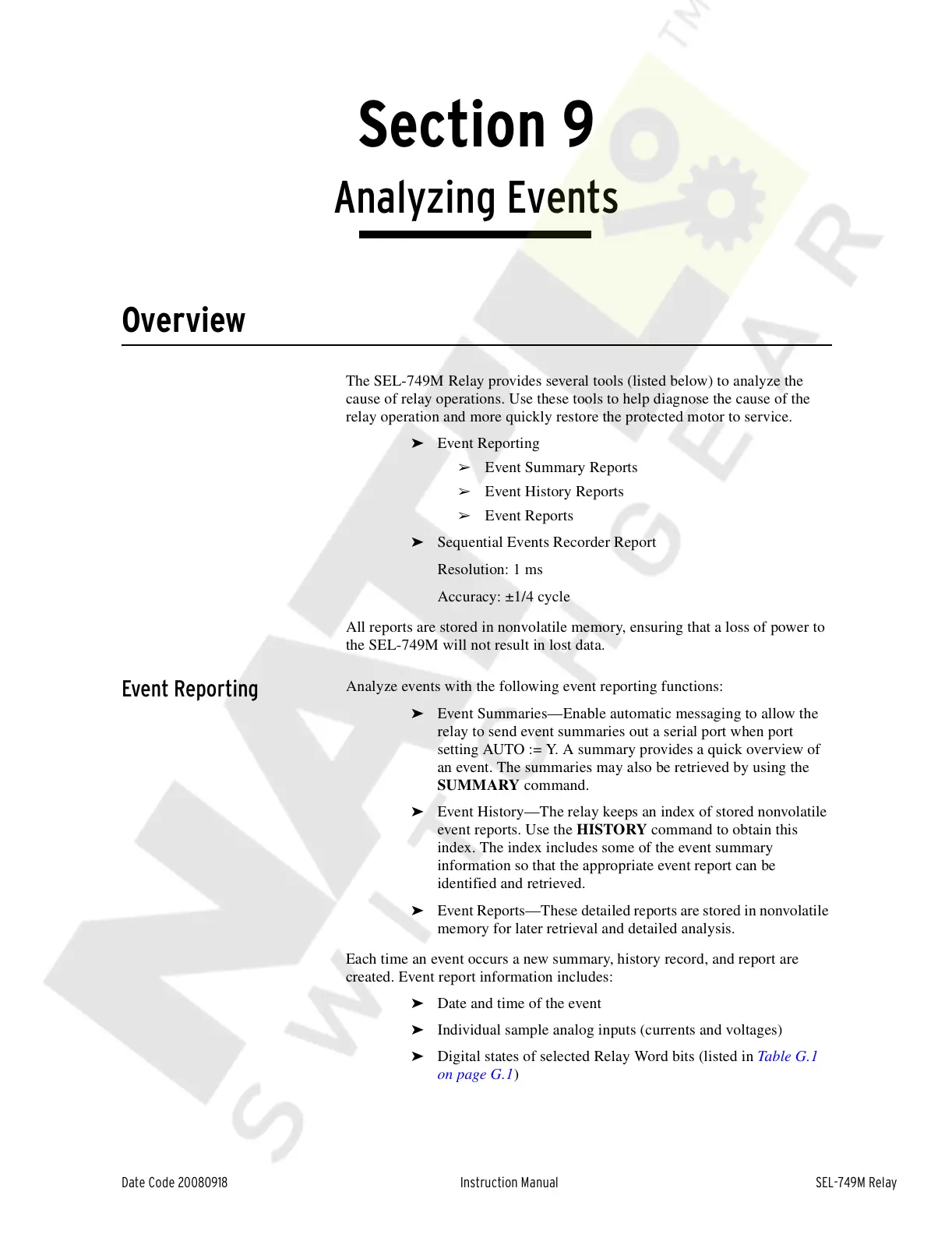 ➤ Event History—The relay keeps an index of stored nonvolatile