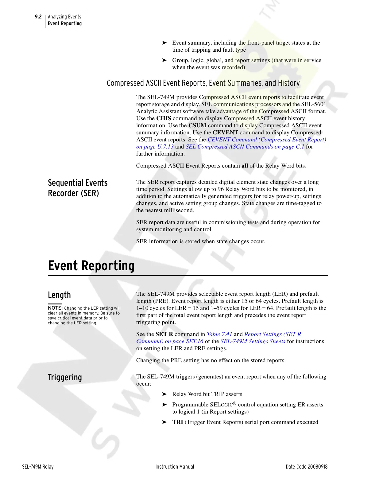 The SEL-749M triggers (generates) an event report when any of the following