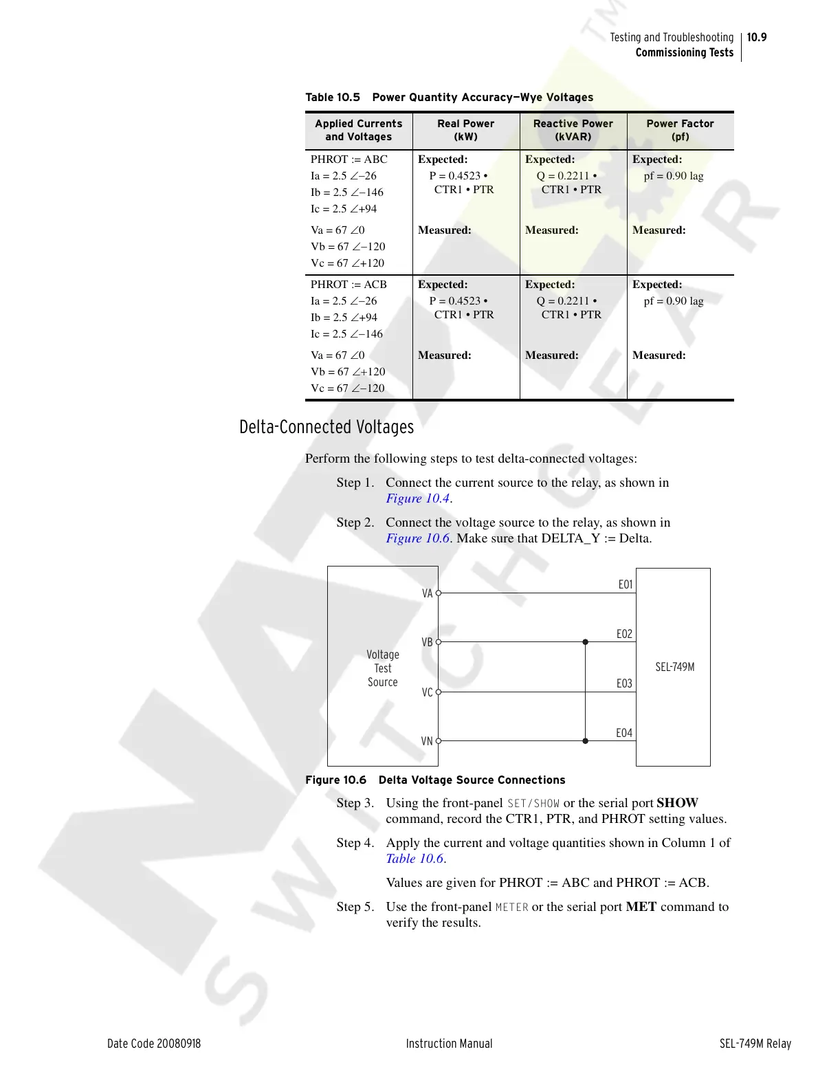 Table 10.5 Power Quantity Accuracy—Wye Voltages